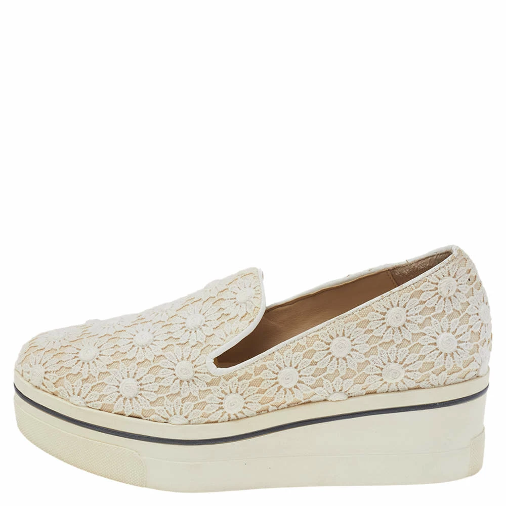 Flaunting an intricate cream floral lace on the exterior, these sneakers from Stella McCartney are all you need to make a subtle style statement. They come with 5 cm platform heels. Coordinate your outfit with these slip-on sneakers and look absolutely chic.