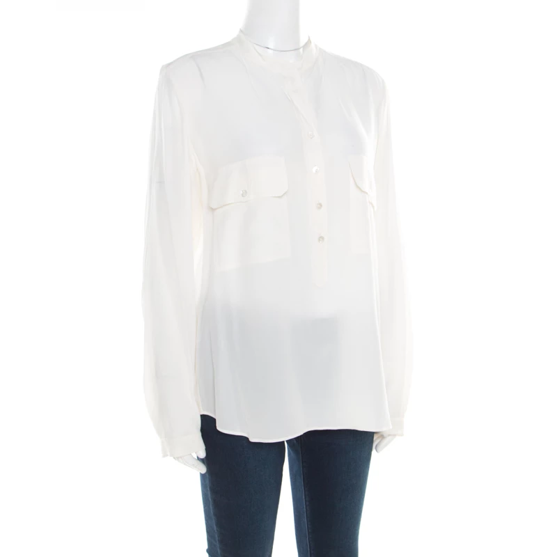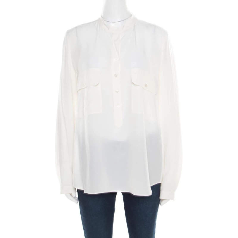 This blouse from Stella McCartney would surely be a significant addition to your collection. This smart and sophisticated cream piece, with its simple design, is just too good for you. Tailored from silk, this blouse is a perfect blend of fashion and comfort.