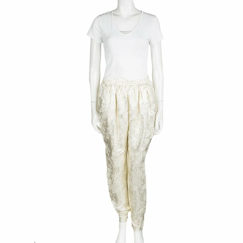 Simple and sophisticated, this creation from Stella McCartney is perfect for a regular outing with friends. The pants are made of silk and feature a lovely floral jacquard on the front. It has a plain style on the back and elastic waist fastening. Pair it with a simple top and stilettos for a fabulous look.