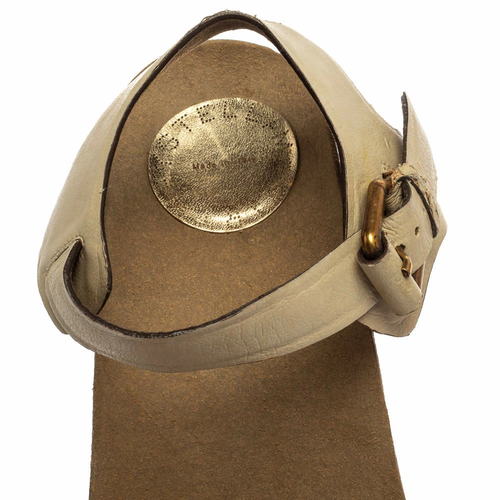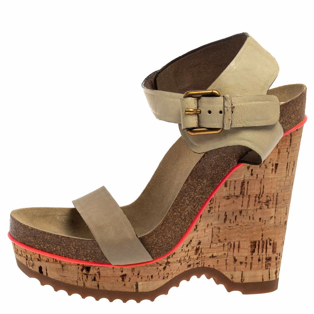 Experience comfortable luxury when you step out in this lovely pair of sandals from Stella McCartney. The pair has been designed with straps in suede and secure with buckle fastening. But it is their set of 16 cm cork wedges that makes them a standout design.