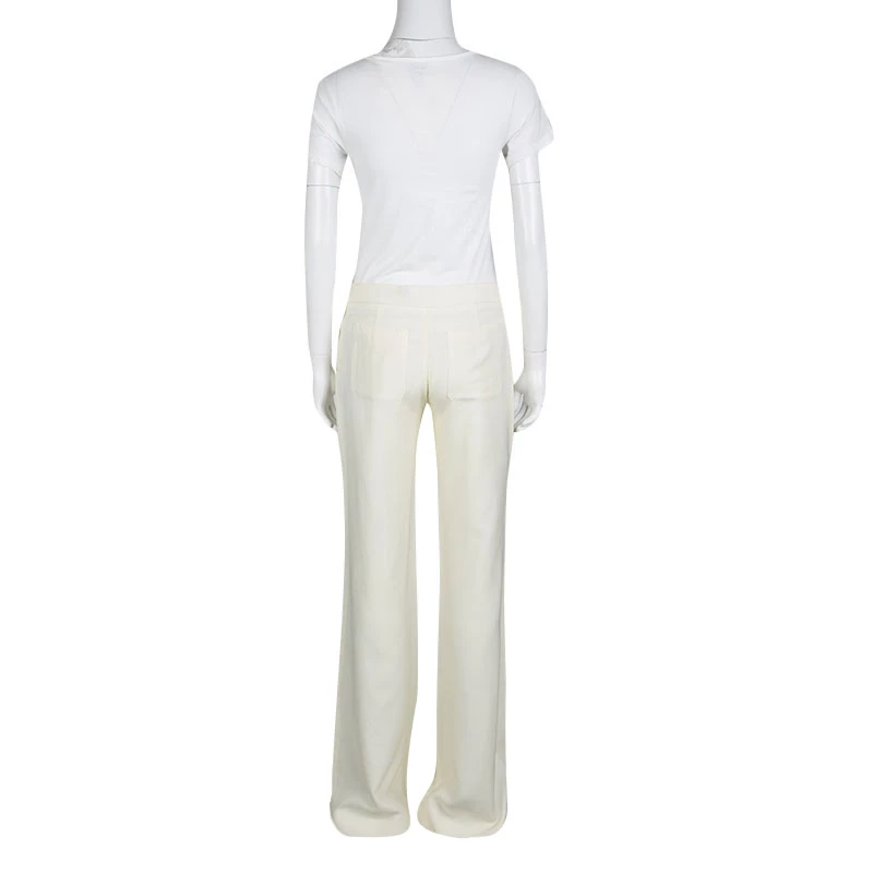 Cool, calm and collected designs dominated the Fall Winter 2015 collection of Stella McCartney. These Alberta trousers offer the same feel. They have been crafted with a wool and mohair blend, a fusion that gives you a comfortable wearing experience. They flaunt a muted cream hue and come with relaxed, wide legs.