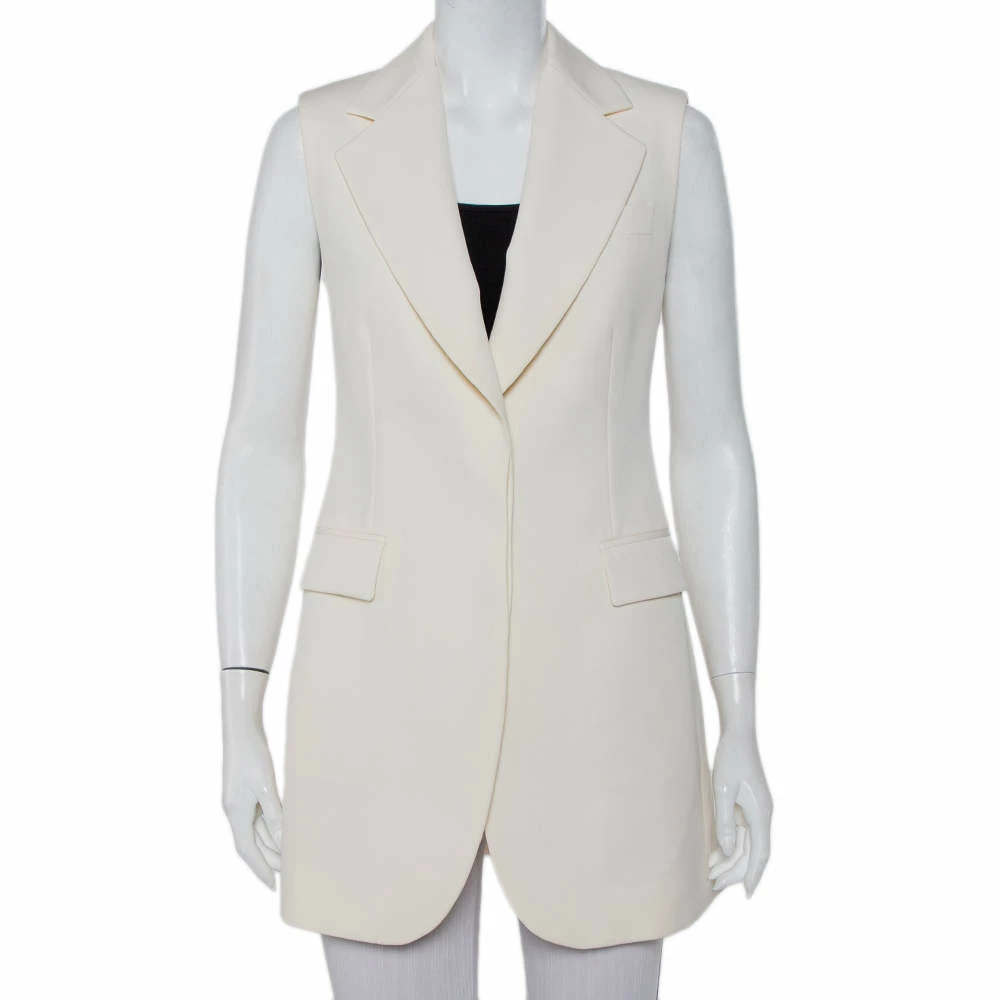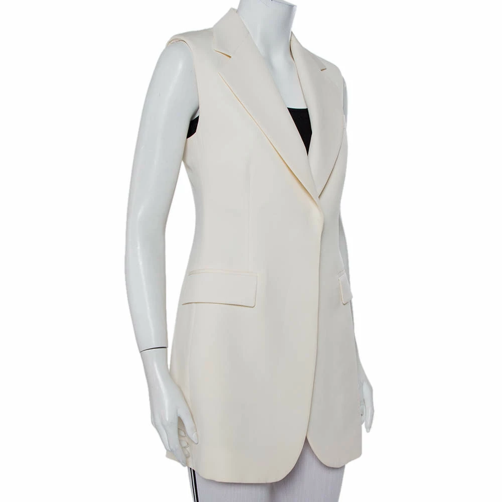 Grab attention by wearing this contemporary blazer from Stella McCartney. This comfortable and stylish cream blazer is designed in a sleeveless style from wool and features three pockets. Use this appealing and posh creation to flaunt your stylish look.