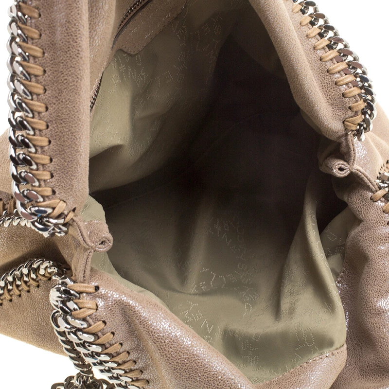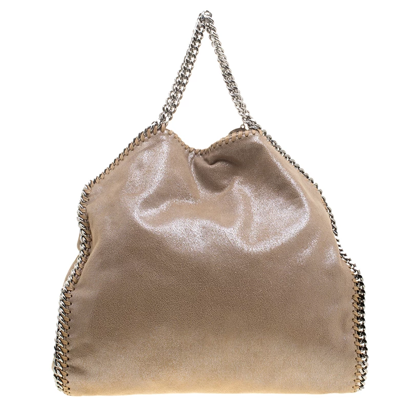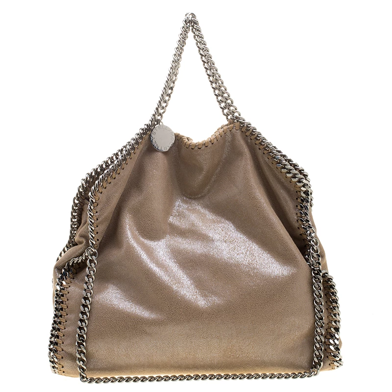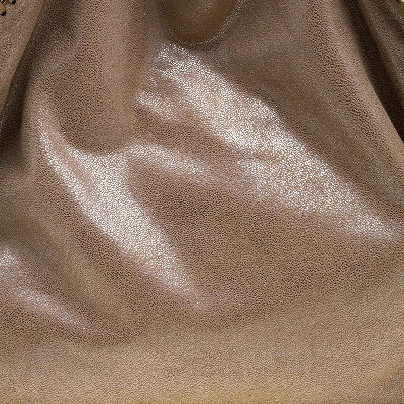 Stella McCartney is known for her chic designs and this Falabella tote perfectly embodies this trait. Crafted in Italy from beige faux leather, this tote has a smooth metallic exterior and black tone chain details at its contours and as handles. This bag can be carried with your everyday outfits.