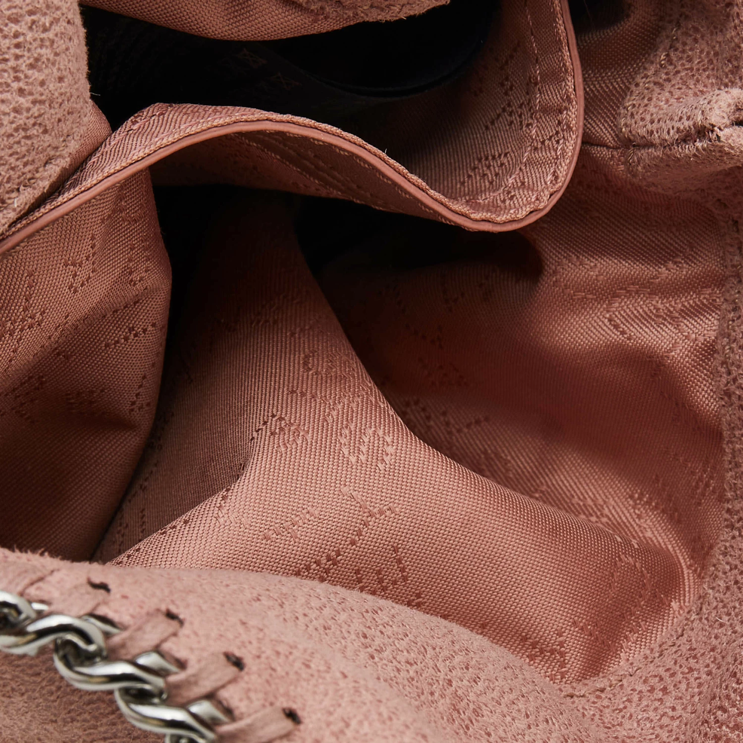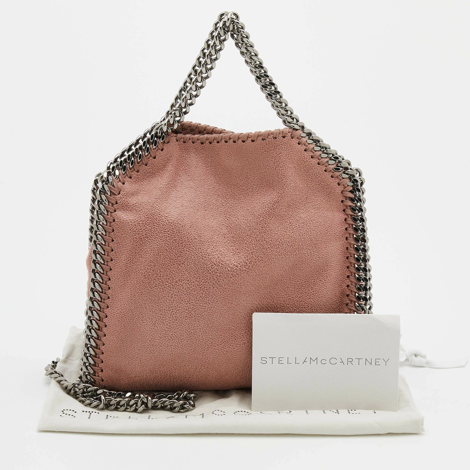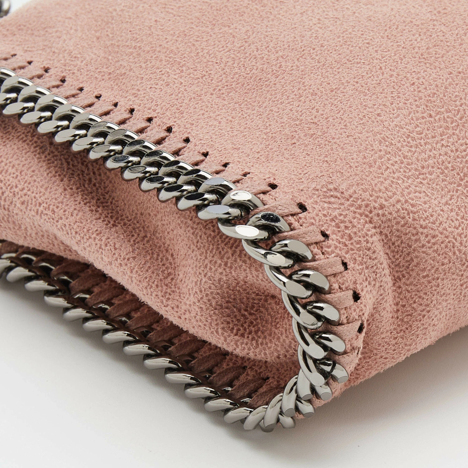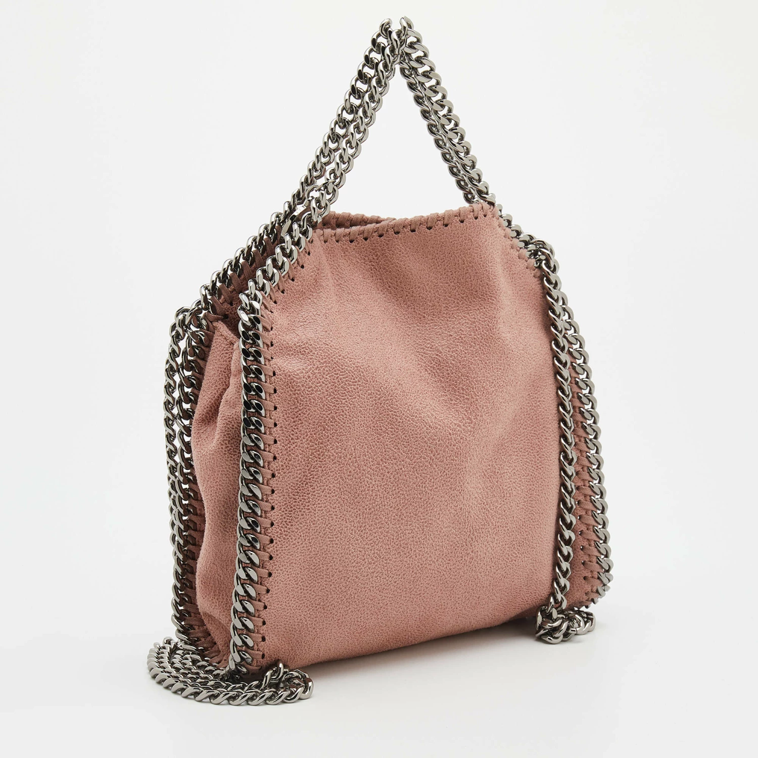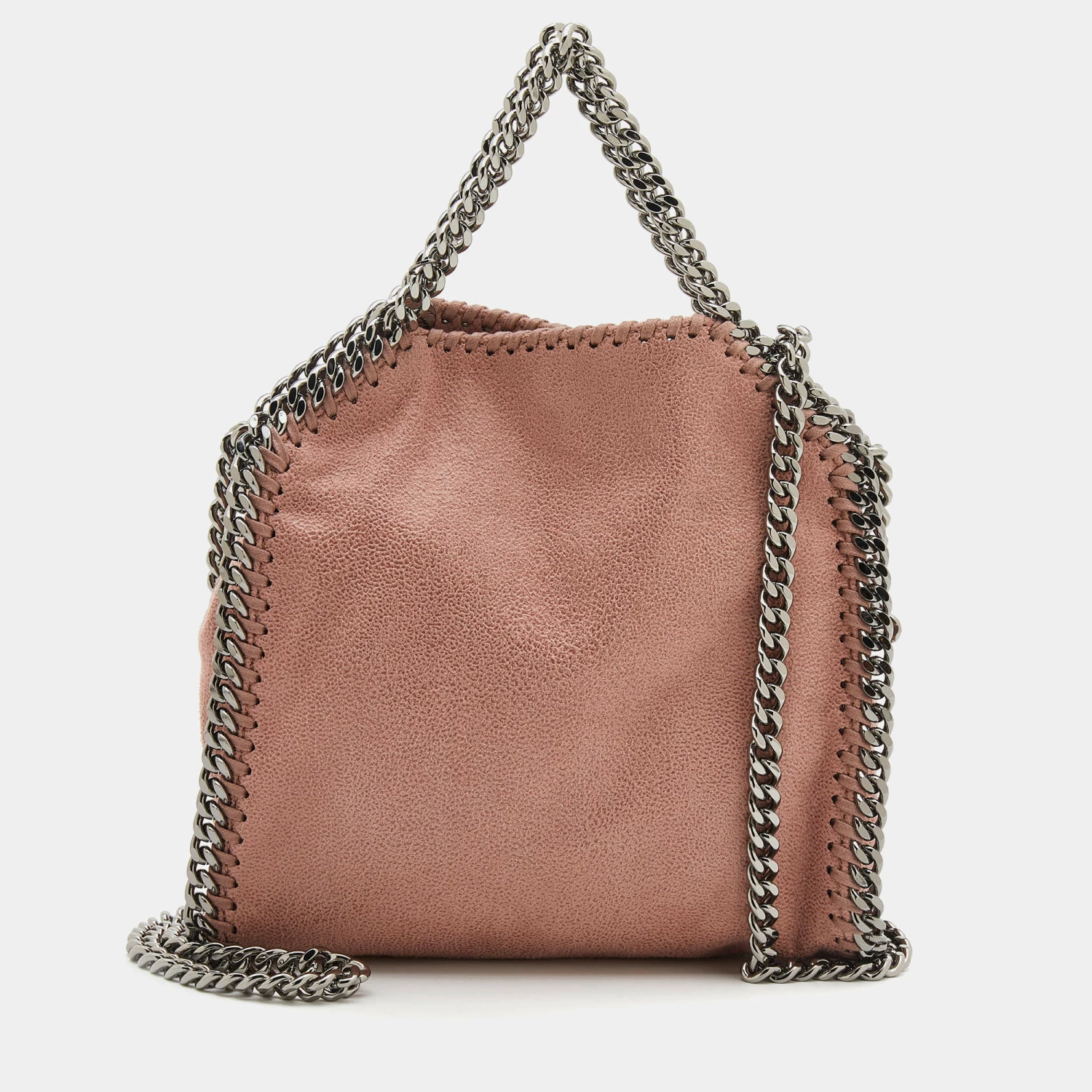 The chain whipstitch detailing beautifully outlines this Stella McCartney Falabella tote. Crafted from faux leather, it has been adorned with gunmetal-tone accents, and it can be carried with a chain shoulder strap. The fabric-lined interior can safely store your evening essentials.