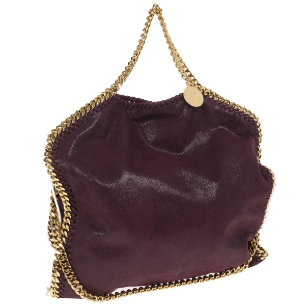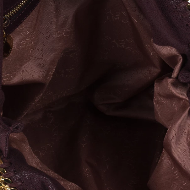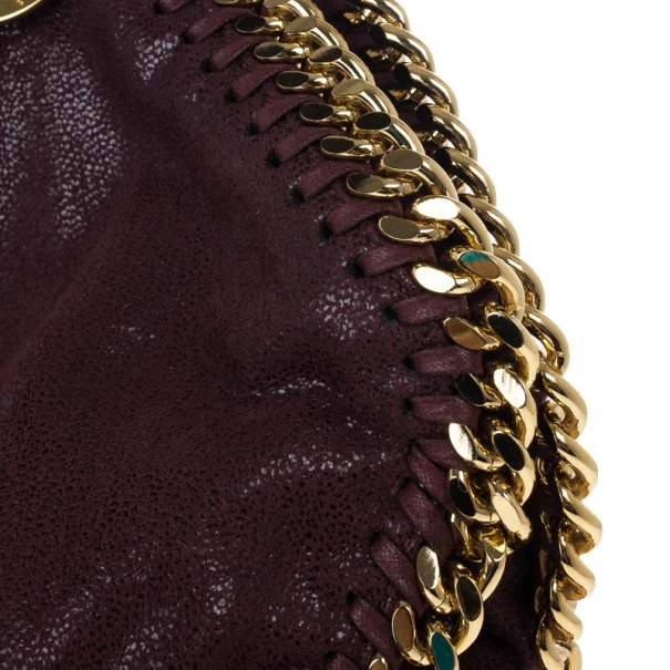 Keep it casually classy with this Stella McCartney tote. Part of the Falabella collections, this accessory combines theΒ fabulous colors of burgundy and gold. Its shaggy deer fabric is given a shimmery exterior matched with a shiny gold-tone logo disc and chains around the sides of the bag.Β Its comfortable lookΒ is matchedΒ with its versatile design, as the two top handles can beΒ switched for a shoulder strap and folded-over for a smaller size.Β The interior is lined with monogrammed nylon and includes a snap closure and one zipped pocket with a logo disc.Original Retail Price: US $1,195