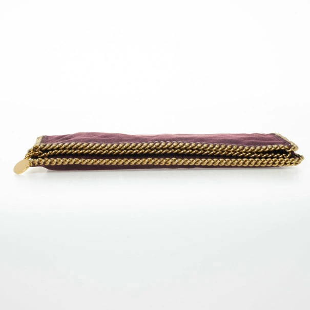 Dress up your outfit with this fashion forward Falabella Clutch by Stella McCartney. This flap over style clutch is made from shaggy deer fabric with polished gold chain link trim that features two Stella McCartney engraved round charms and a back zip pocket. The interior is lined with pink Stella McCartney printed canvas and features two snap buttoned compartments and an external zipper pocket.Original Retail Price: US $973