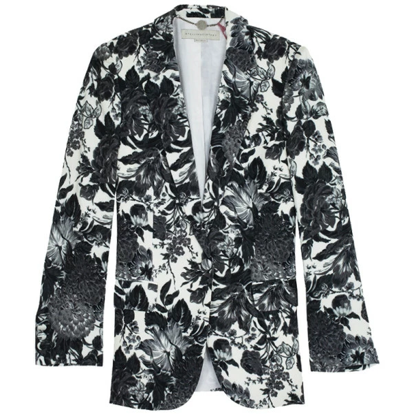 This floral printed Stella McCartney blazer is made from rayon in beautiful black and white. It features two front pockets and one breast pocket. Celebrities seen wearing this jacket include none other than gorgeous Beyonce.