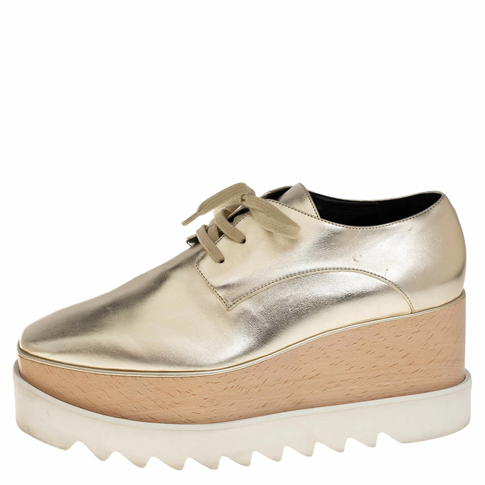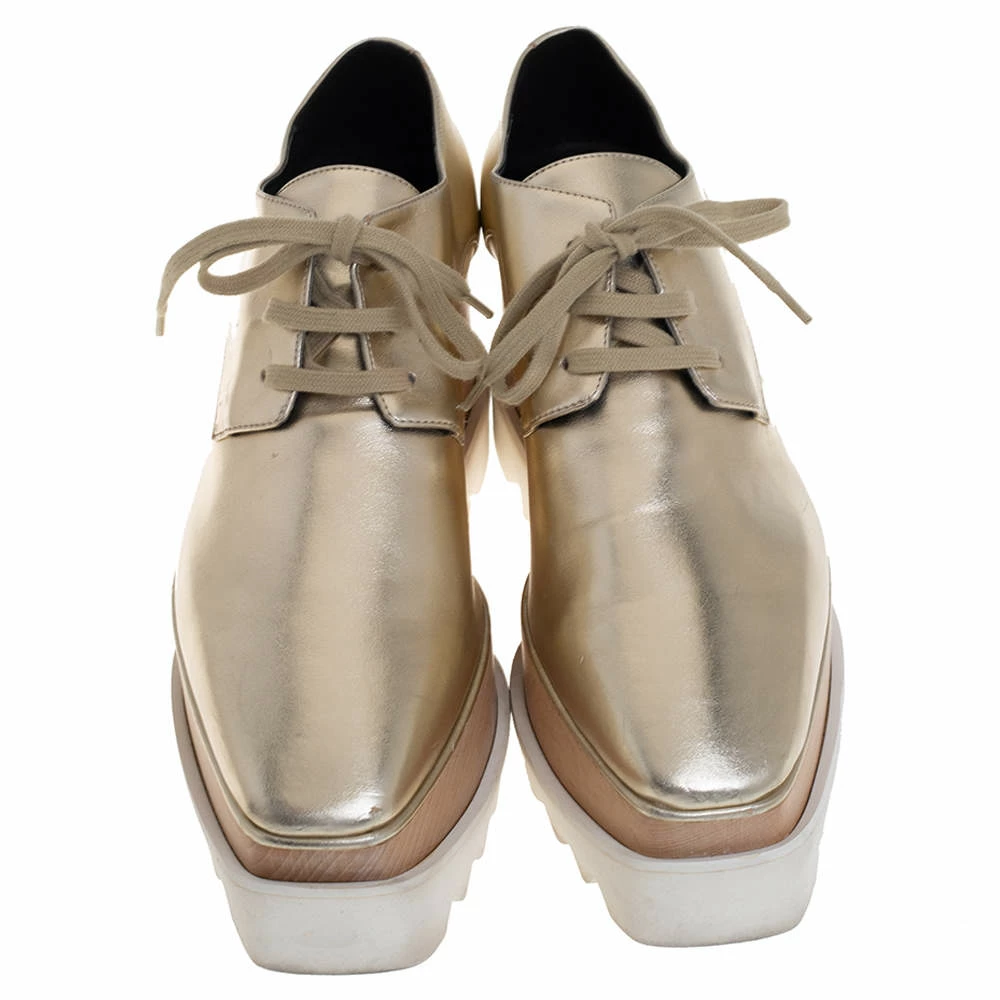 Signature Stella McCartney sneakers you’ll love wearing! Crafted using faux leather, the sneakers in gold are secured with simple lace-ups and lifted on stacked platform soles.