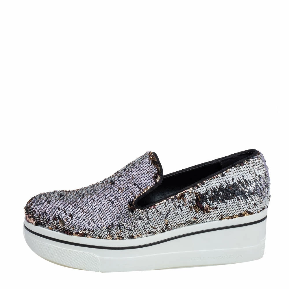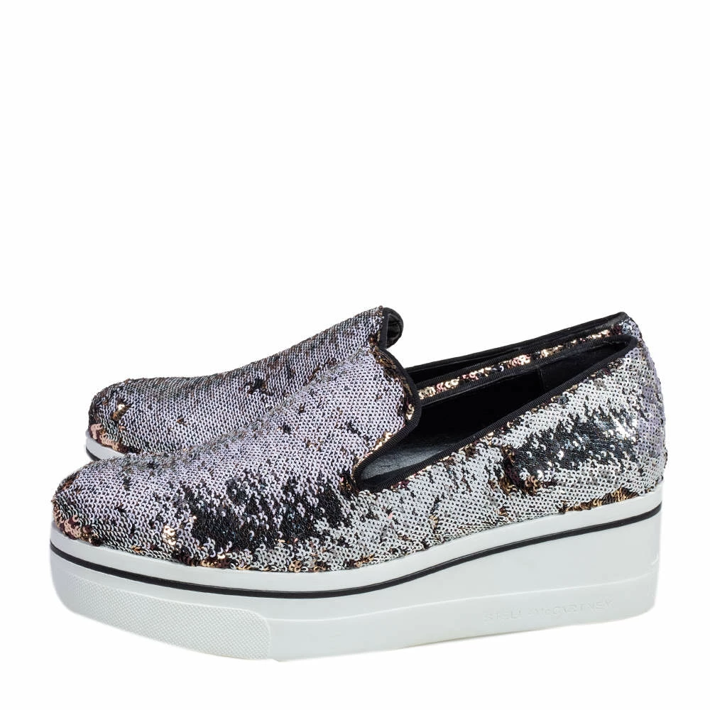 These Binx sneakers from Stella McCartney are effortlessly chic and stylish. The sneakers have been crafted from sequins and styled with round toes. They come equipped with comfortable faux leather insoles and thick rubber platforms.