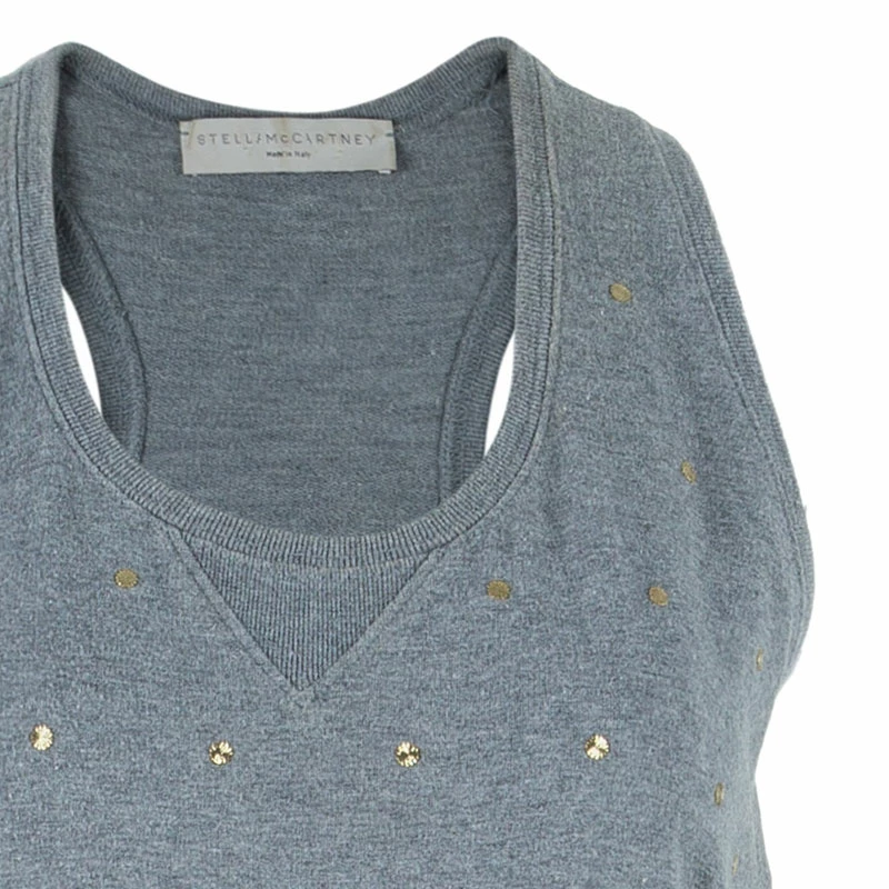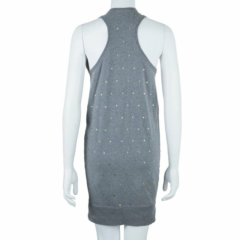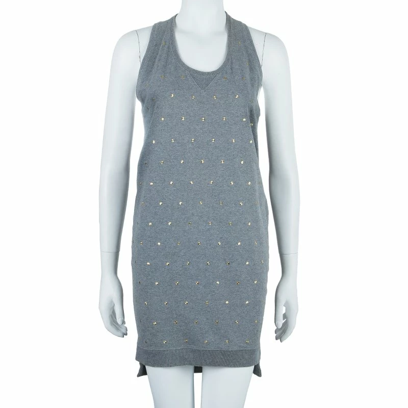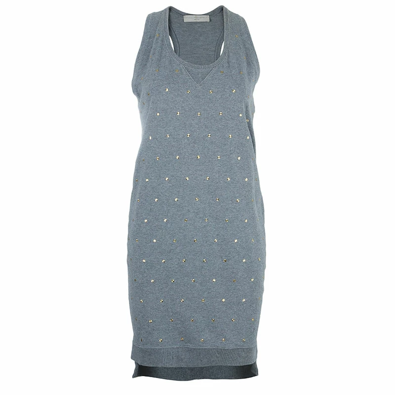 Young and playful at heart, Stella McCartney comes with this sleeveless dress. It features a round-neckline with sleeveless cut and a runners back design. It comes with a ribbed details and an asymmetrical hem. The overall golden embellishments make it look chic.