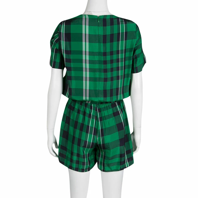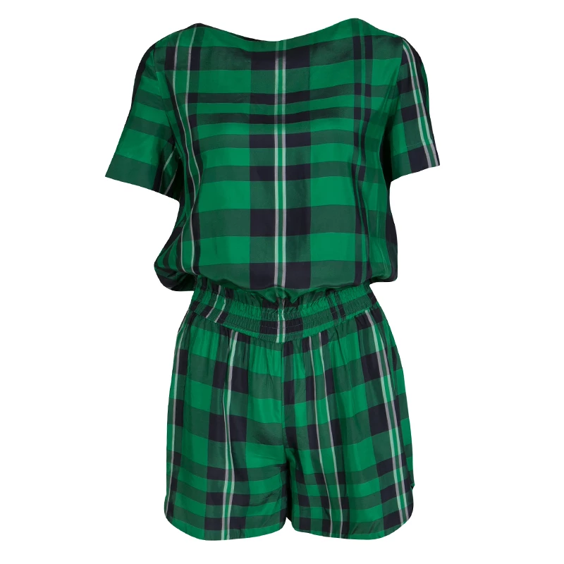 Don a relaxed look with these boat-neck rompers from Stella McCartney. Graced with gingham checks, they have a loose-fitting structure with a thick, elasticized waistline. These exude a contemporary charm ideal for any downtown roves.