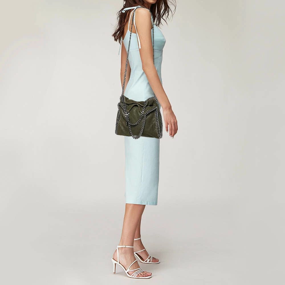 This Falabella tote from Stella McCartney will make the dream of countless women come true. Crafted from faux leather, it is durable and stylish. While the chain detailing elevate its beauty, the fabric-lined interior will dutifully hold all your daily essentials. You are sure to make hearts skip when you swing this tote using the chain handles.
