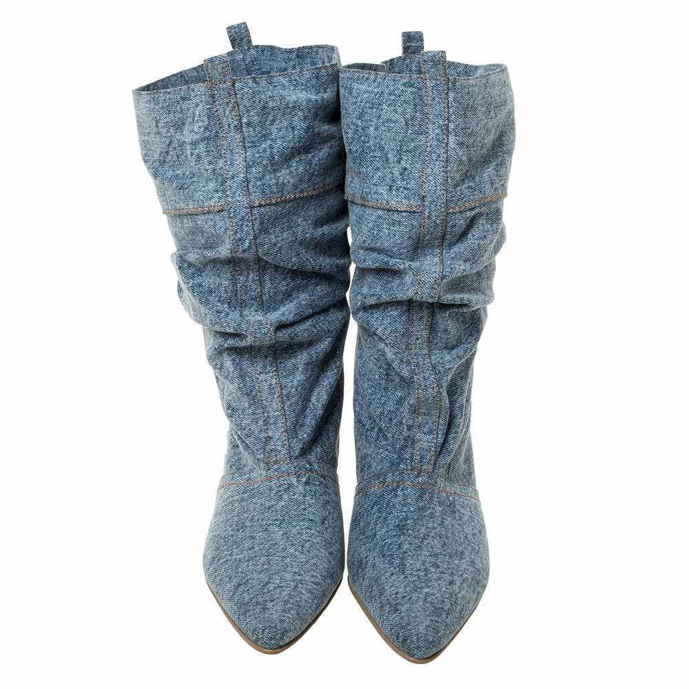 It’s time to rock all your outings with these chic and smart mid-calf boots from Stella McCartney that exude oodles of style. These grey boots are crafted from denim fabric and flaunt pointed toes, faux leather-lined insoles, and kitten heels. Pair these versatile beauties with skirts and dresses for a fashionable look.