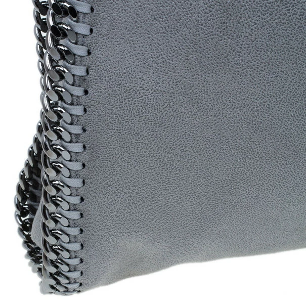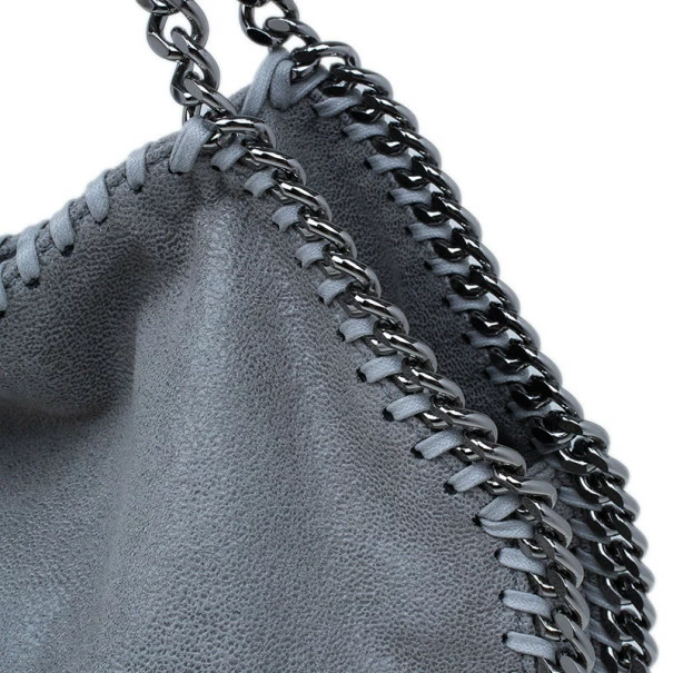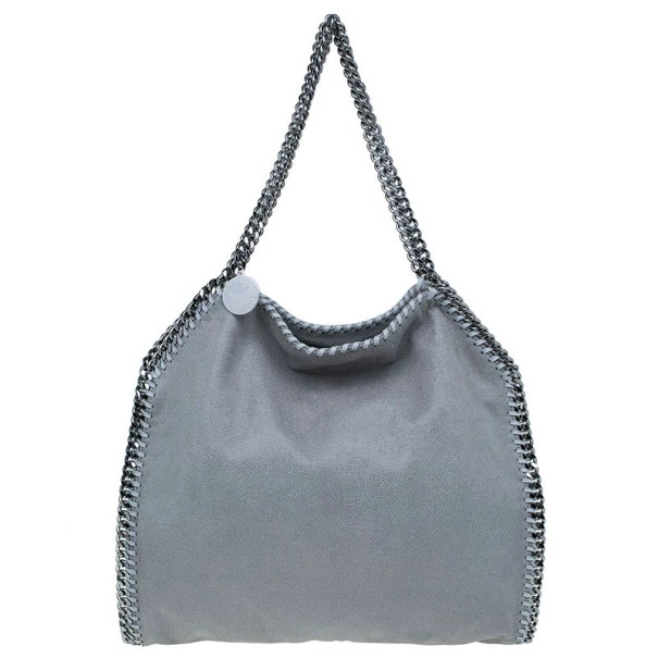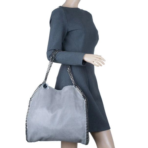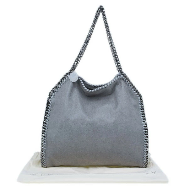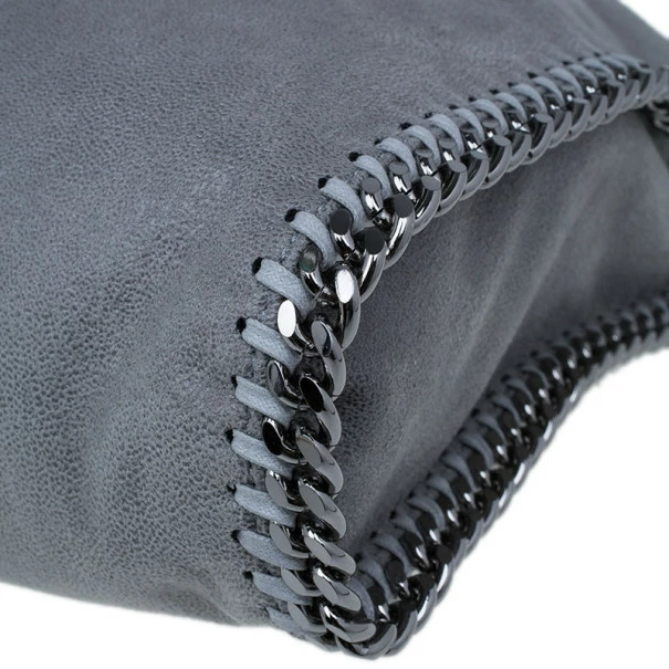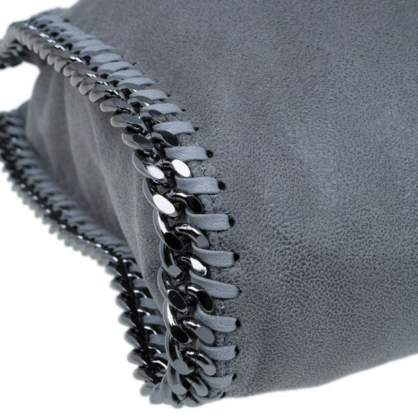 Easily add a subtle touch to your look with this FalabellaΒ piece by Stella McCartney. Made from greyΒ faux suede, this toteΒ is framed with a whipstitch trim, a magnetic top closure, and a designer-stamped disc. The interior is cotton lined and comes with a zip pocket and a patch pocket. This tote is equipped with a silver-toned gunmetal chain top handle. A fun fact about Stella McCartney is that all her designs are βvegan friendlyβ and have absolutely no animal products in them!Original Retail Price: USΒ $1,195