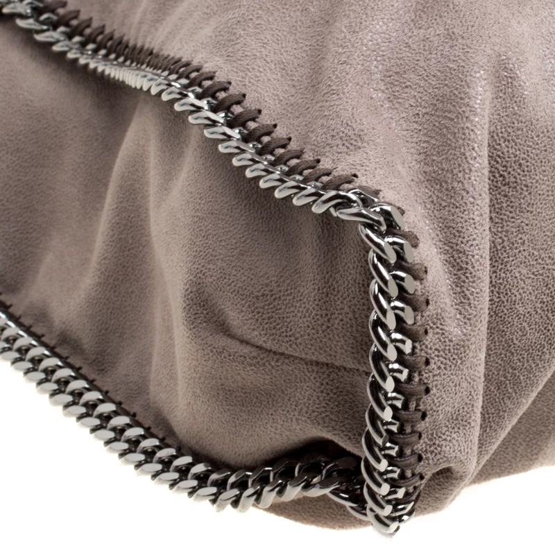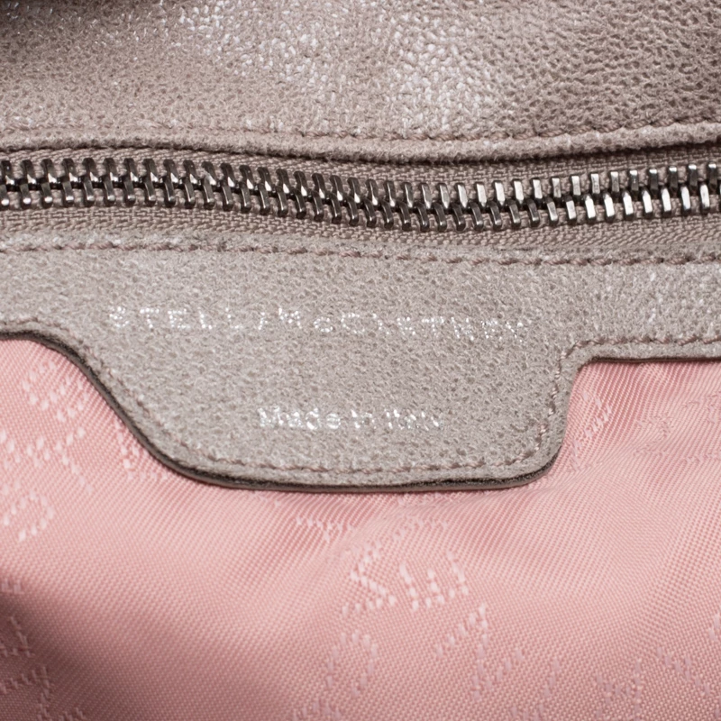 Stella McCartney is known for her chic designs and this Falabella tote perfectly embodies this trait. Crafted in Italy from faux leather with a fabric interior, this tote has a beautiful grey iridescent exterior and silver-tone chain details at its contours and as handles. This bag can be carried with your everyday outfits.