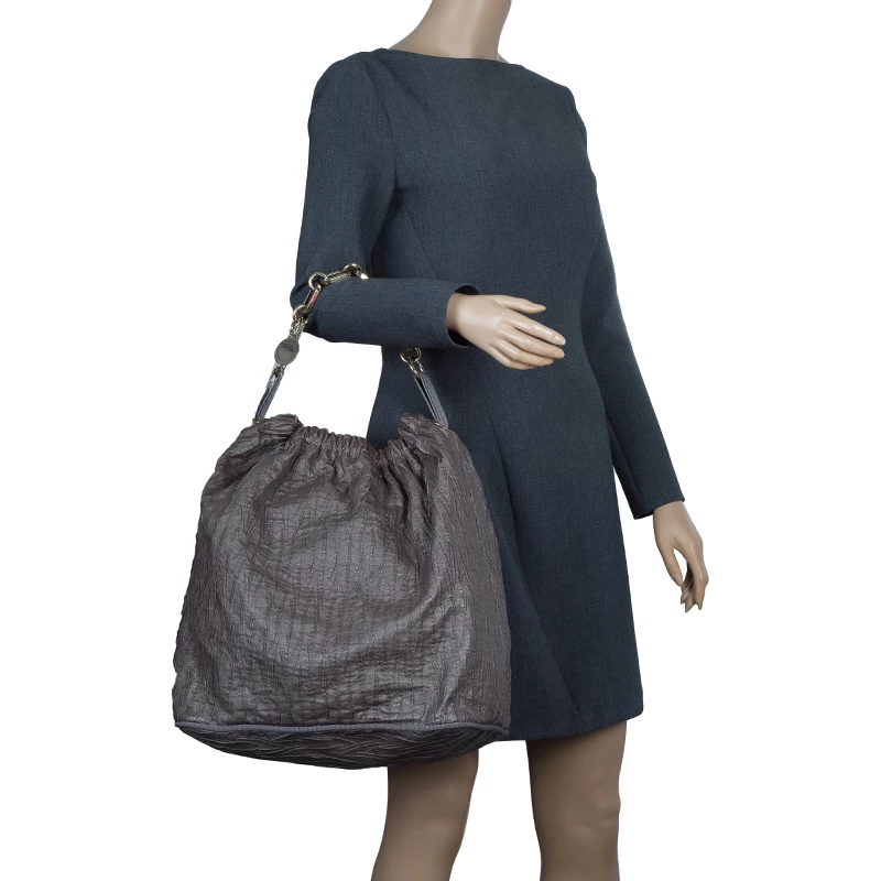 This astounding and worldly Slouchy Hobo by Stella McCartney fits the exact definition of class and elegance. Crafted from faux leather, it features an impressive chain link strap and counters a fabric lined interior along with a zipper and an open pocket. It is accented with gold-tone detailing.