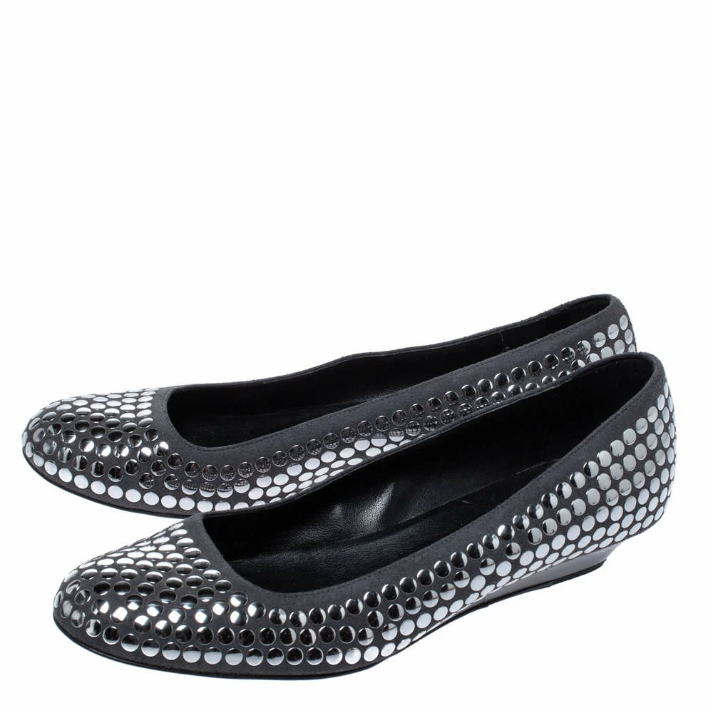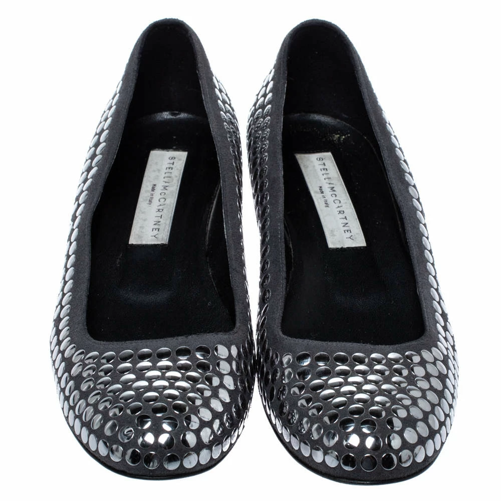 You’re all set to sparkle and shine in these lovely ballet flats from Stella McCartney. The grey flats are crafted from faux suede and feature an elegant silhouette. They flaunt round toes, exquisite stud detailing all over and comfortable faux leather-lined insoles. Pair them with maxi dresses or pleated skirts for your fashionable outings.