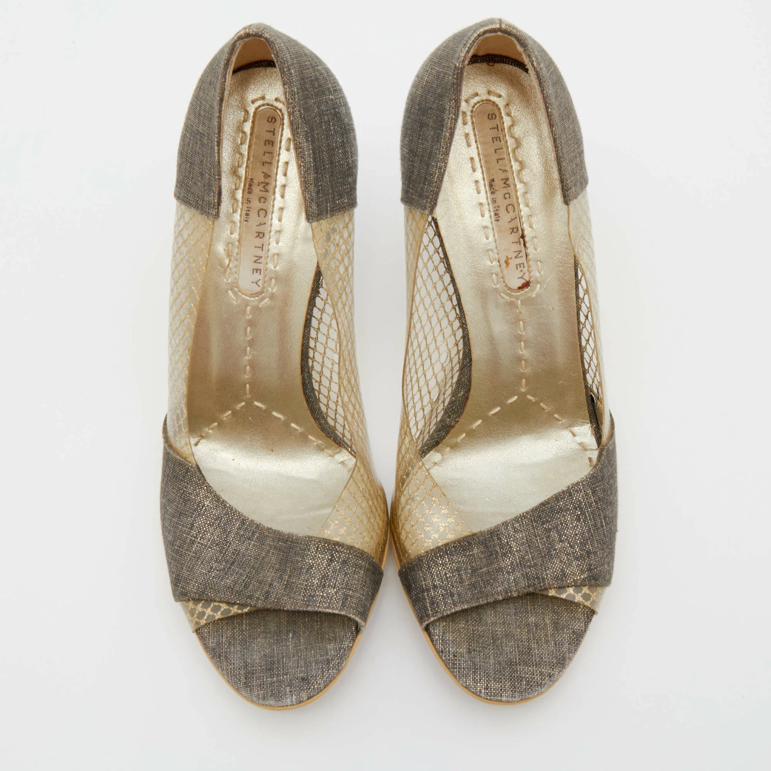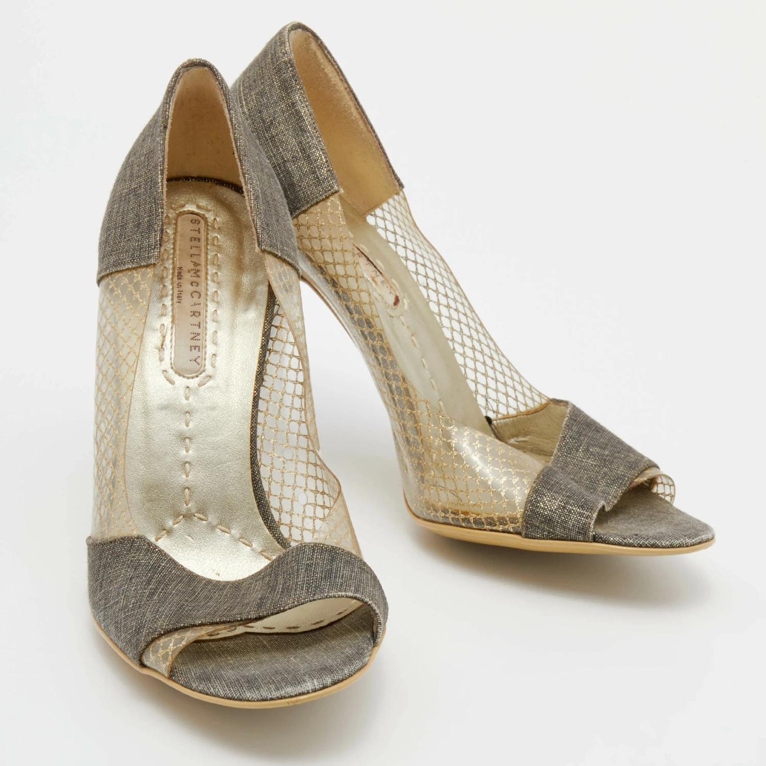 Artistic skill and feminine sophistication take center stage in these beautiful pumps from Stella McCartney! They have been crafted from canvas and PVC and feature peep-toes with a slip-on style. They come equipped with comfortable faux leather insoles and stand tall on 9.5 cm ombre-effect heels.