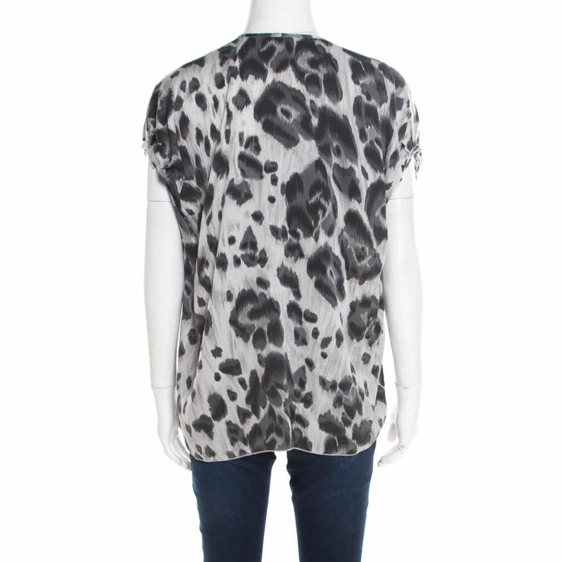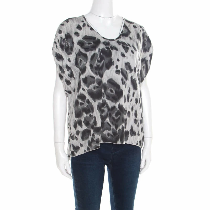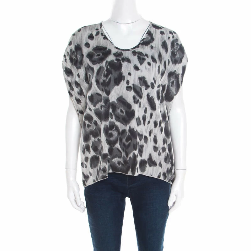 Lovely in a luxe way, this Stella McCartney blouse will be a nice addition to your closet. It comes tailored from silk in a boxy shape and designed with pleated sleeves and animal prints splayed all over.