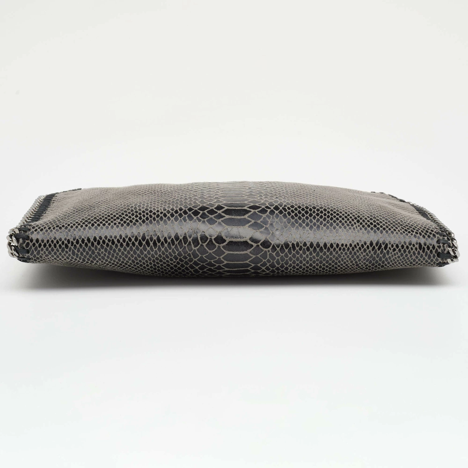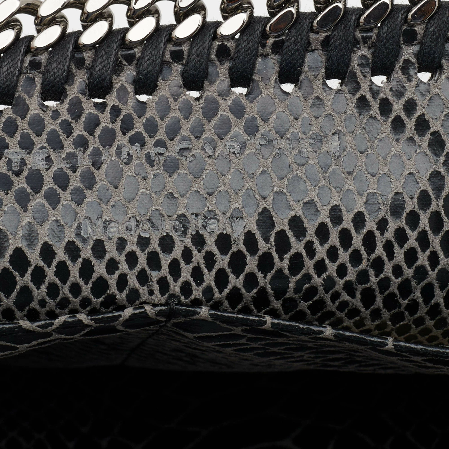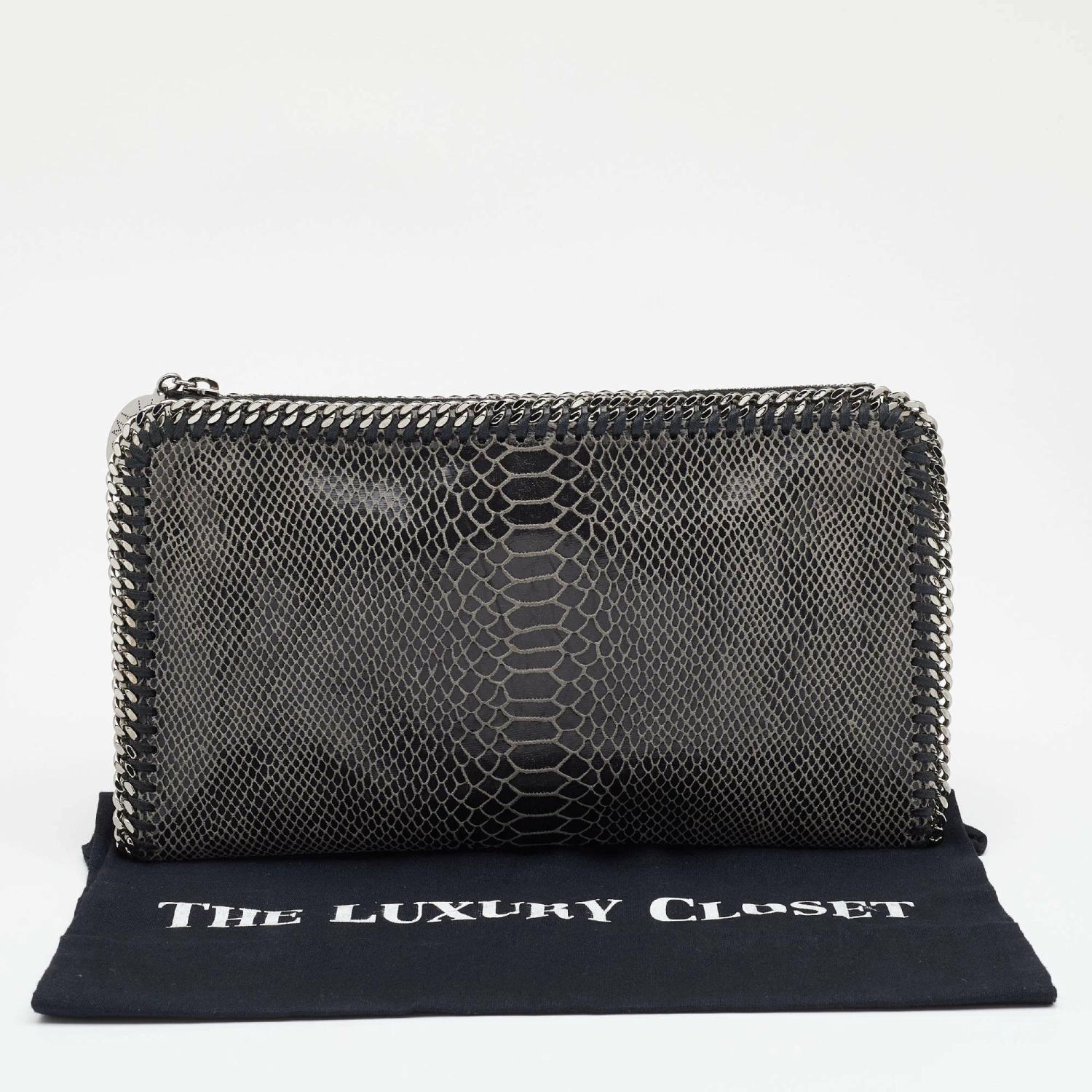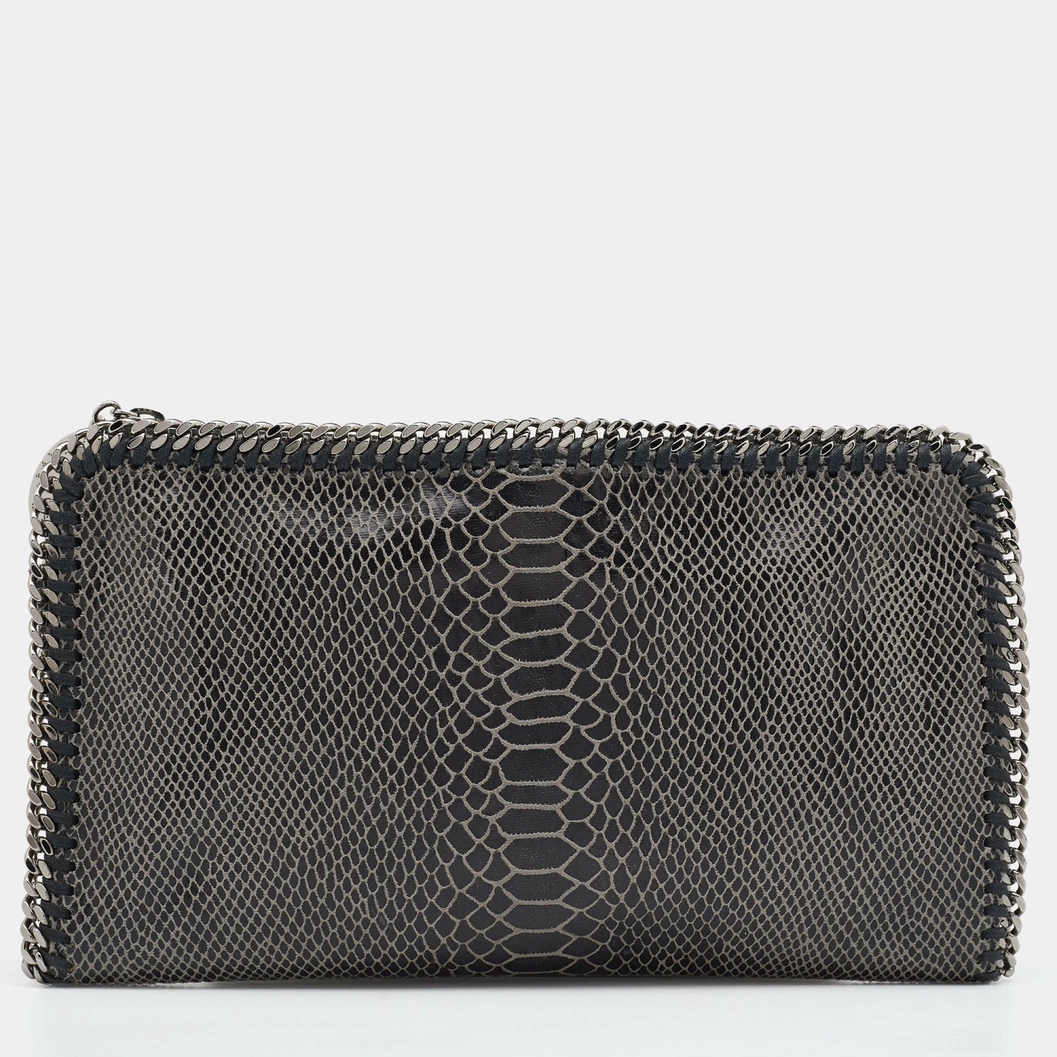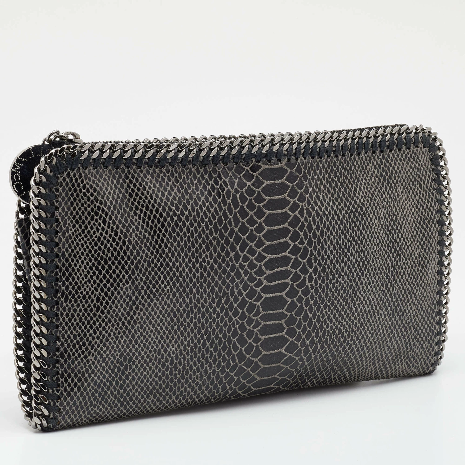 Just carrying this Falabella clutch from Stella McCartney will elevate your attire! Fitted to carry minimal party essentials, this clutch has a rectangular silhouette, which is crafted from grey python-embossed leather. It is embellished with gunmetal-tone hardware and opens to a nylon-lined interior.