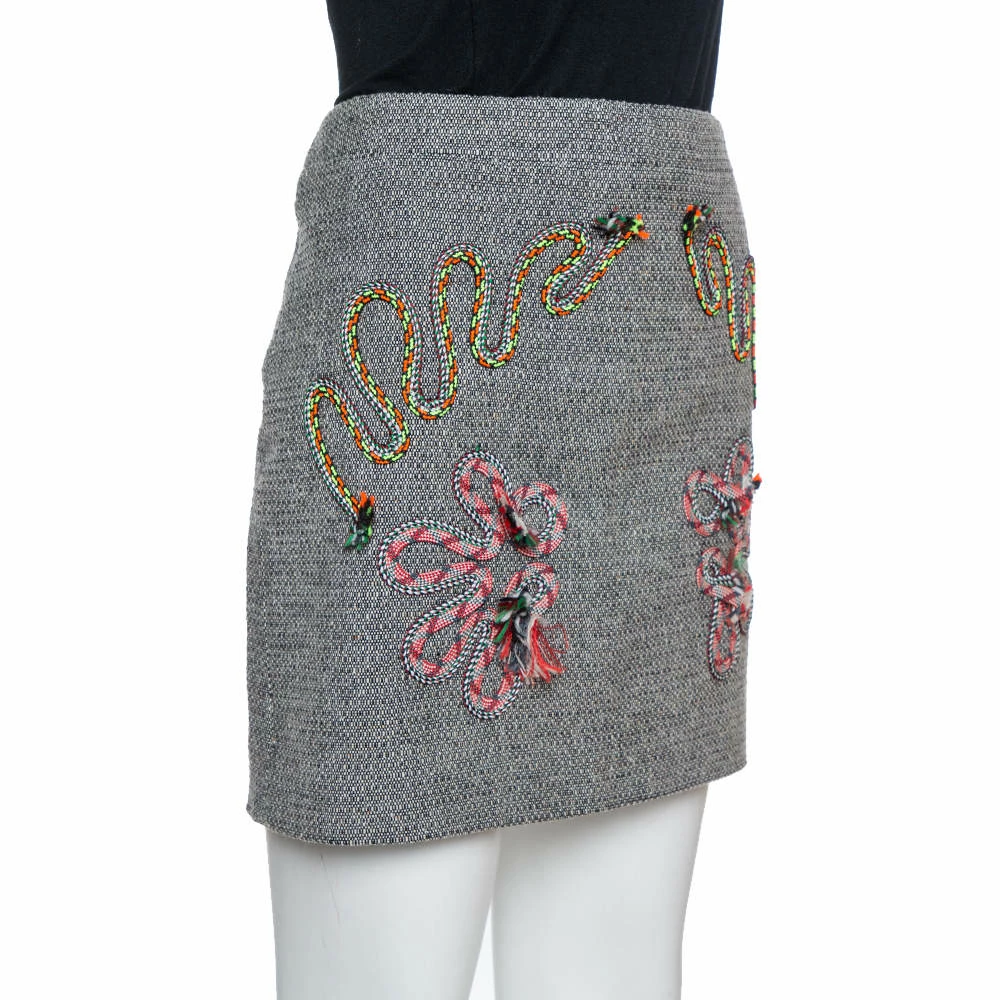 Stella McCartney offers you a fashion-savvy approach through this mini skirt. It is tailored in tweed fabric with a short length. Flaunting a beautiful embroidery at the front, the skirt is designed with a zip fastening. Elevate your casual style by pairing this gorgeous piece with a printed tee and sneakers.