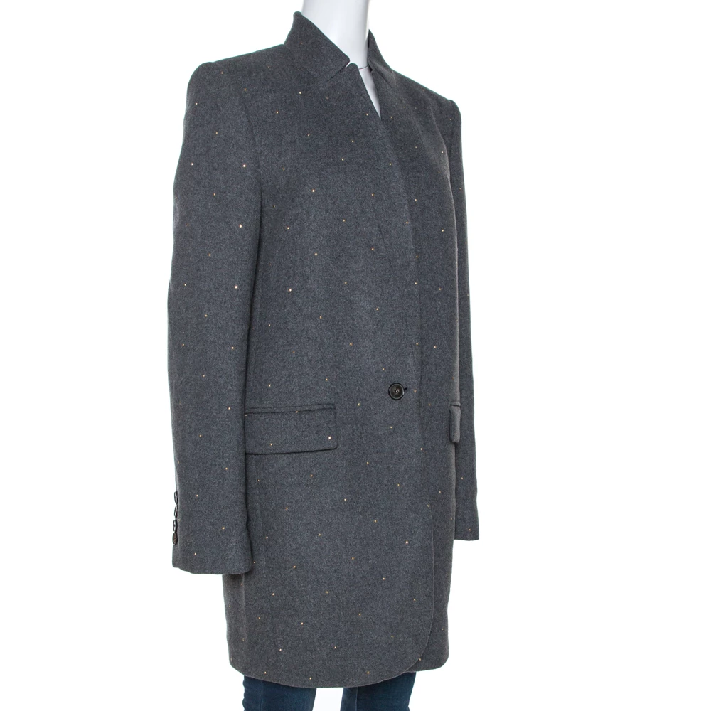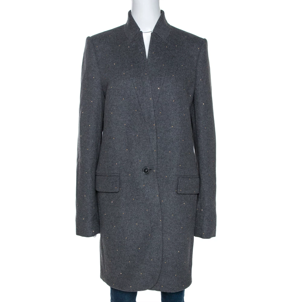 Making a stylish approach to casual fashion, you can add this coat from Stella McCartney to your closet. It is designed to offer both comfort and style in the most effortless way. It features petite embellishments, long sleeves and front button fastenings. This grey creation will come in handy on any day.