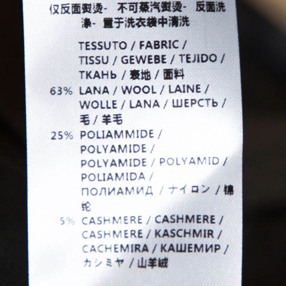 - Fabric: Shell: 63% Wool, 25% Polyamide, 5% Cashmere, 3% Polyester, 3% Acrylic, 1% Cotton ; Trim: 100% Aluminium ; Lining: 50% Rayon, 50% Cotton