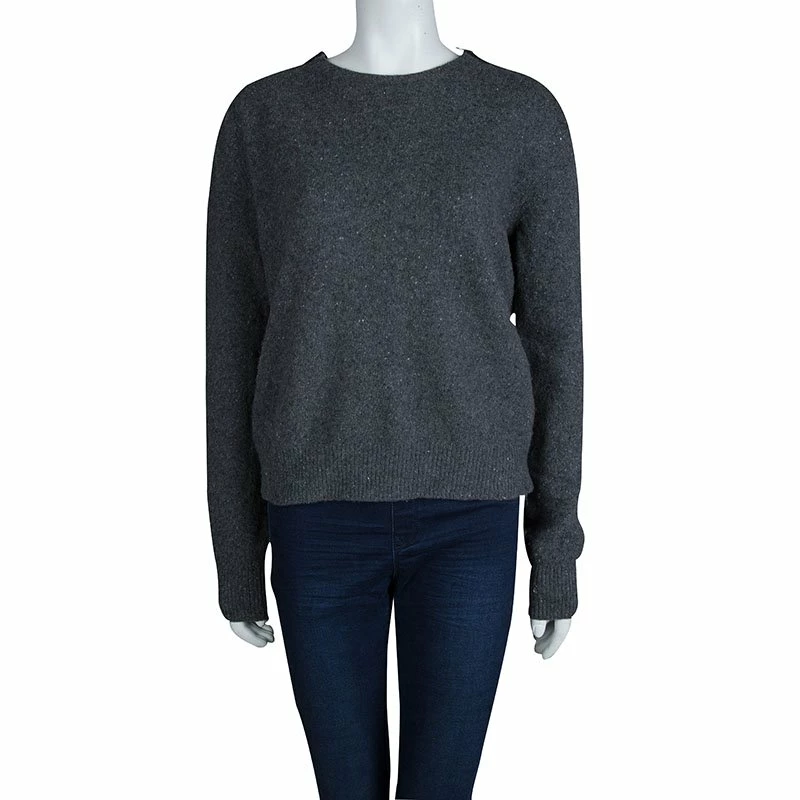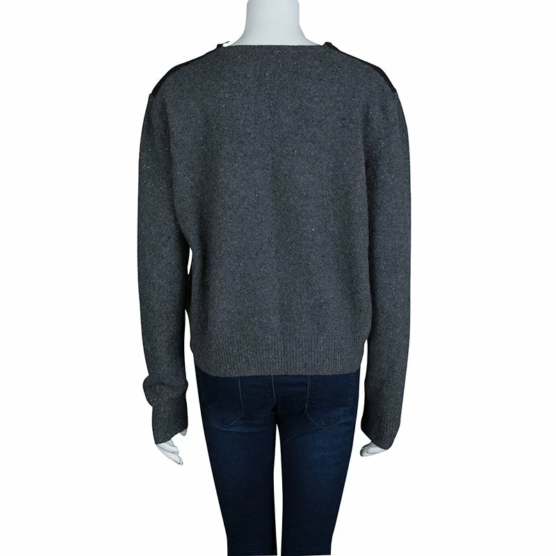 This smoky grey sweater from Stella McCartney is ideal for cold days. Made from wool, the crew neck sweater has accents in the form of gold tone Zip detail on either shoulder. Cuffs extend beyond the wrists to keep your hands warm.