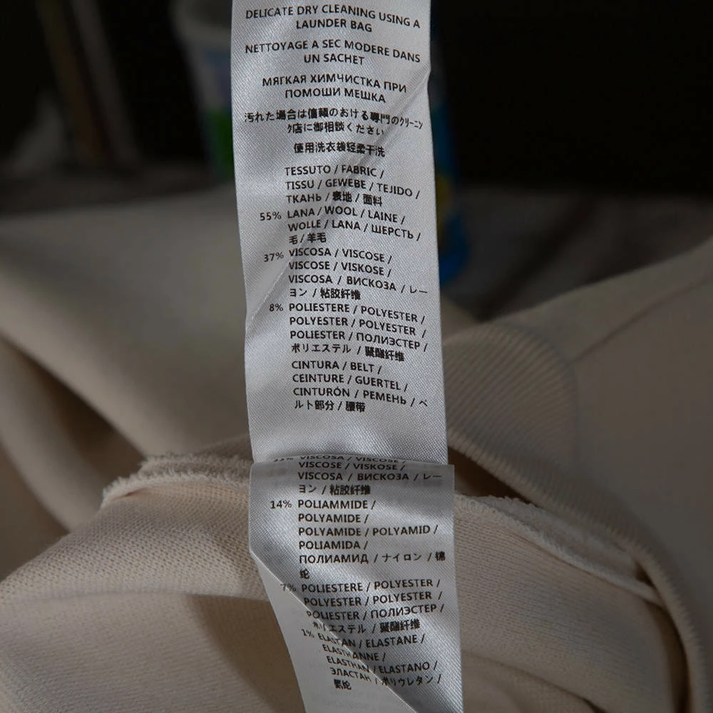 - Fabric: Shell: 55% Wool, 37% Viscose, 8% Polyester ; Trim: 45% Wool, 33% Viscose, 14% Polyamide, 7% Polyester, 1% Elastane