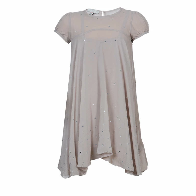 The Stella McCartney Kids collection will ensure your child is as fashionable as you. This dress, crafted from silk, comes with a round neck, short sleeves and an asymmetric hem. It is studded with crystals all over.