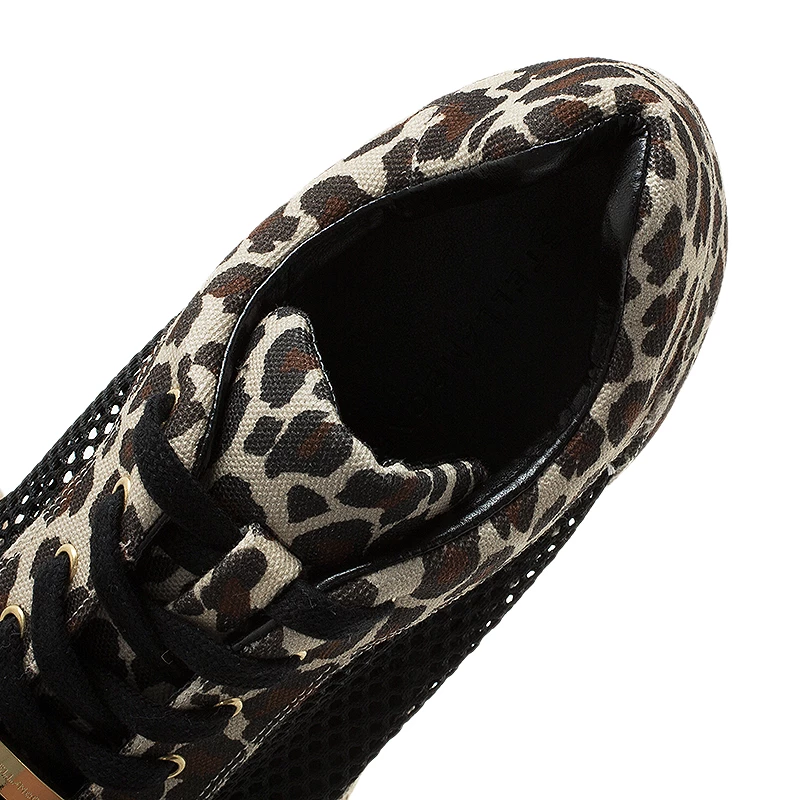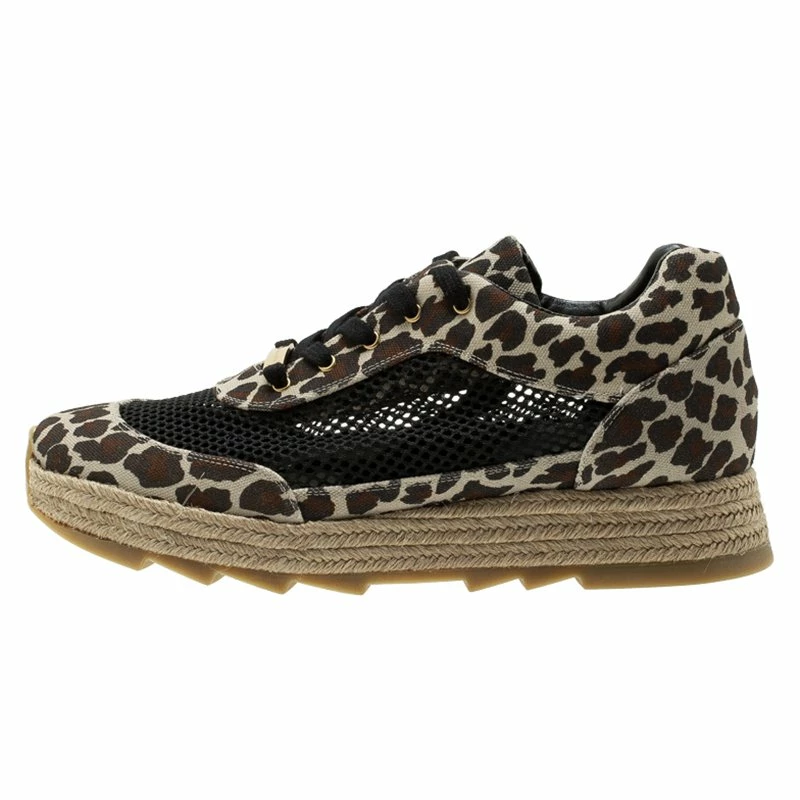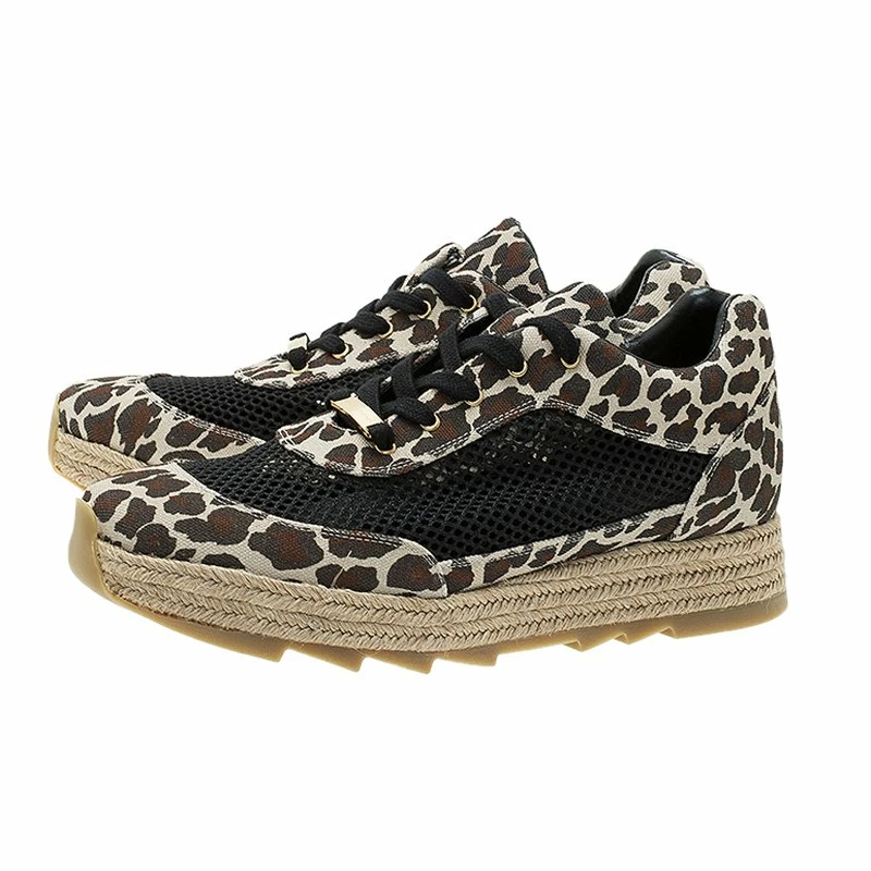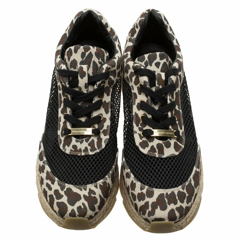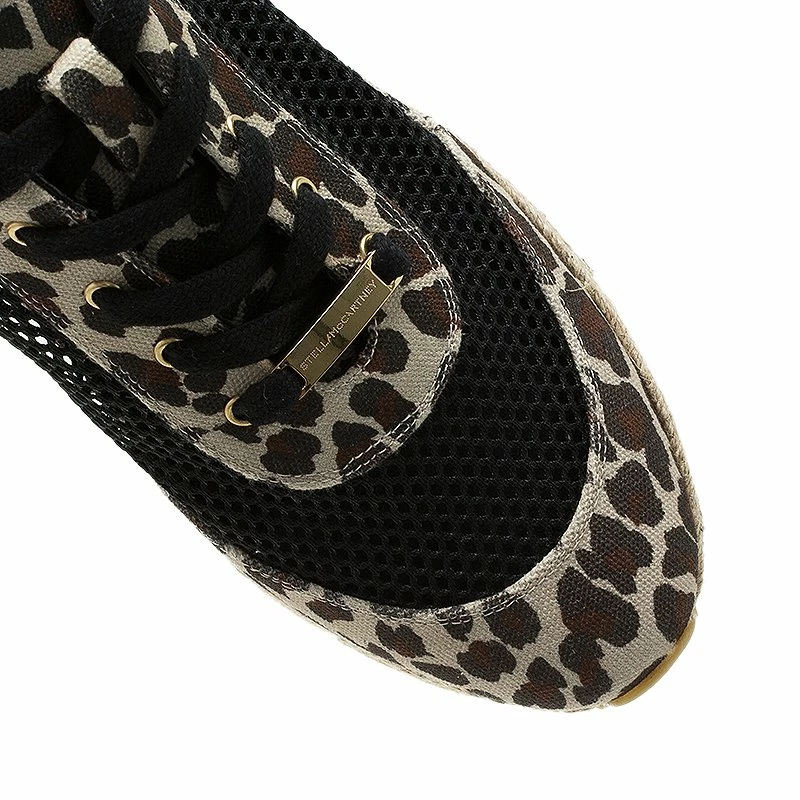 Stella McCartney has yet again put forth her eco-friendly stance in styling these leopard print sneakers. These mixed media sneakers feature espadrille midsoles, mesh quarters, and laces to aid in better fit. Insoles are lined with faux leather and carry brand engraving.
