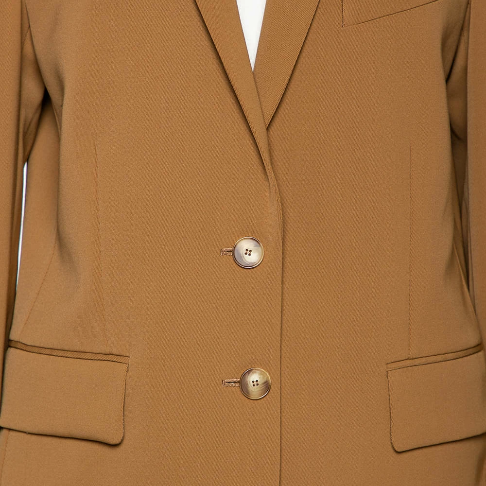 From Stella McCartney, this blazer is a stunning creation that will elevate your style. It is tailored using light brown wool and presents a single-breasted style. It has three pockets, butoned closure, and long sleeves. Exude sophistication and charm as you style this blazer.