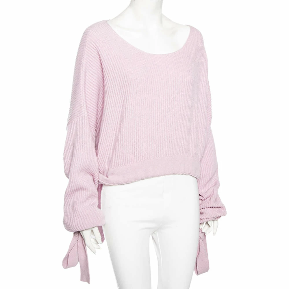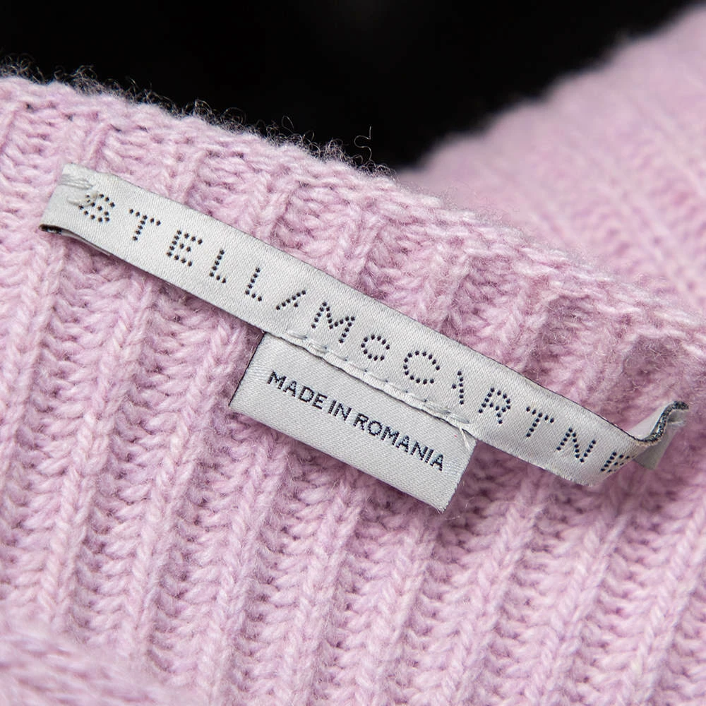 Redefine your designer closet by adding a touch of feminine style and poise with this sweater from the House of Stella McCartney. It has been stitched using lilac cashmere knit fabric and exhibits a tie detail, an asymmetrical length, and a beautiful neckline. Look chic as you wear this sweater.