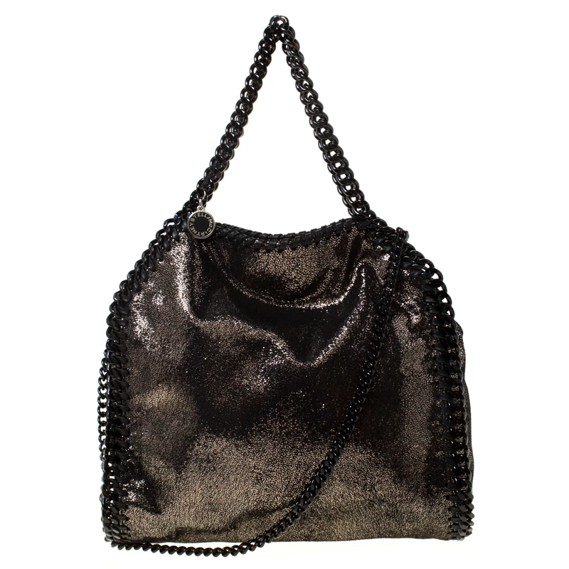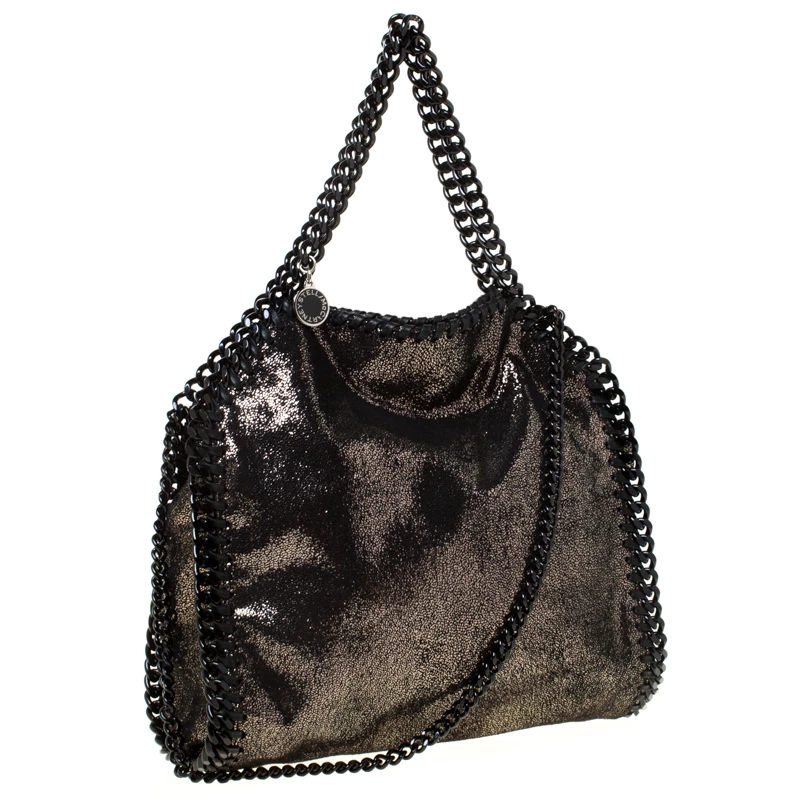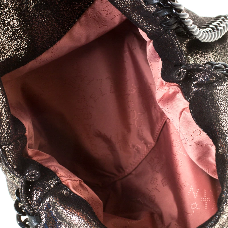 Stella McCartney is known for her chic designs and this Falabella tote perfectly embodies this trait. Crafted in Italy from black faux leather with a fabric interior, this bag has a beautiful exterior and black-tone chain details at its contours and as handles. This bag can be carried with your everyday outfits.