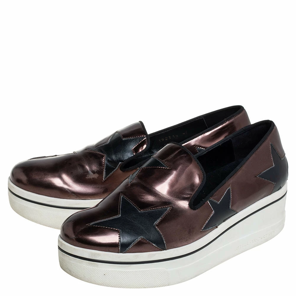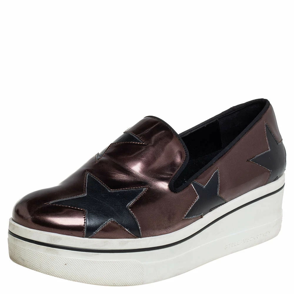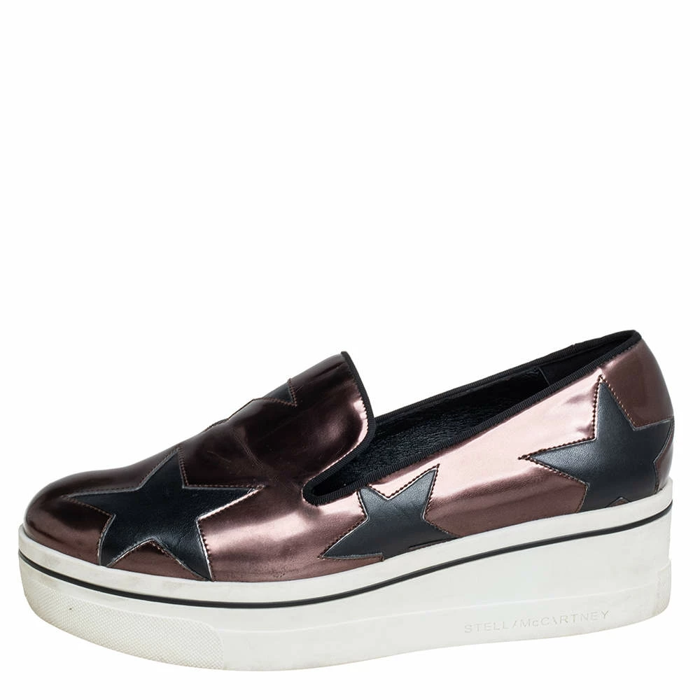 These Binx sneakers from Stella McCartney are effortlessly chic and stylish. The metallic bronze sneakers have been crafted from faux leather and styled with round toes and star-shaped cut-outs all over. They come equipped with comfortable faux leather insoles and thick rubber platforms.