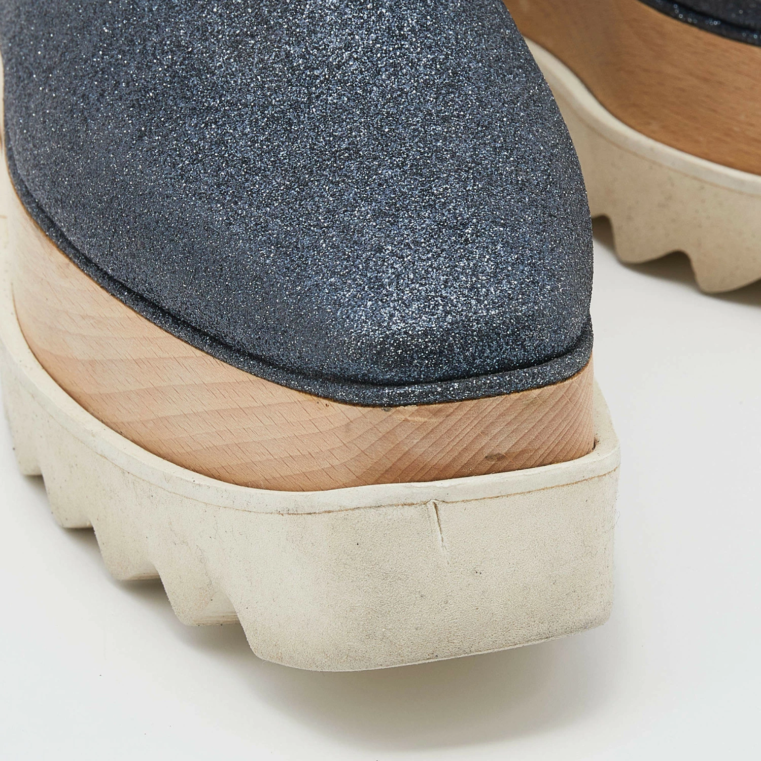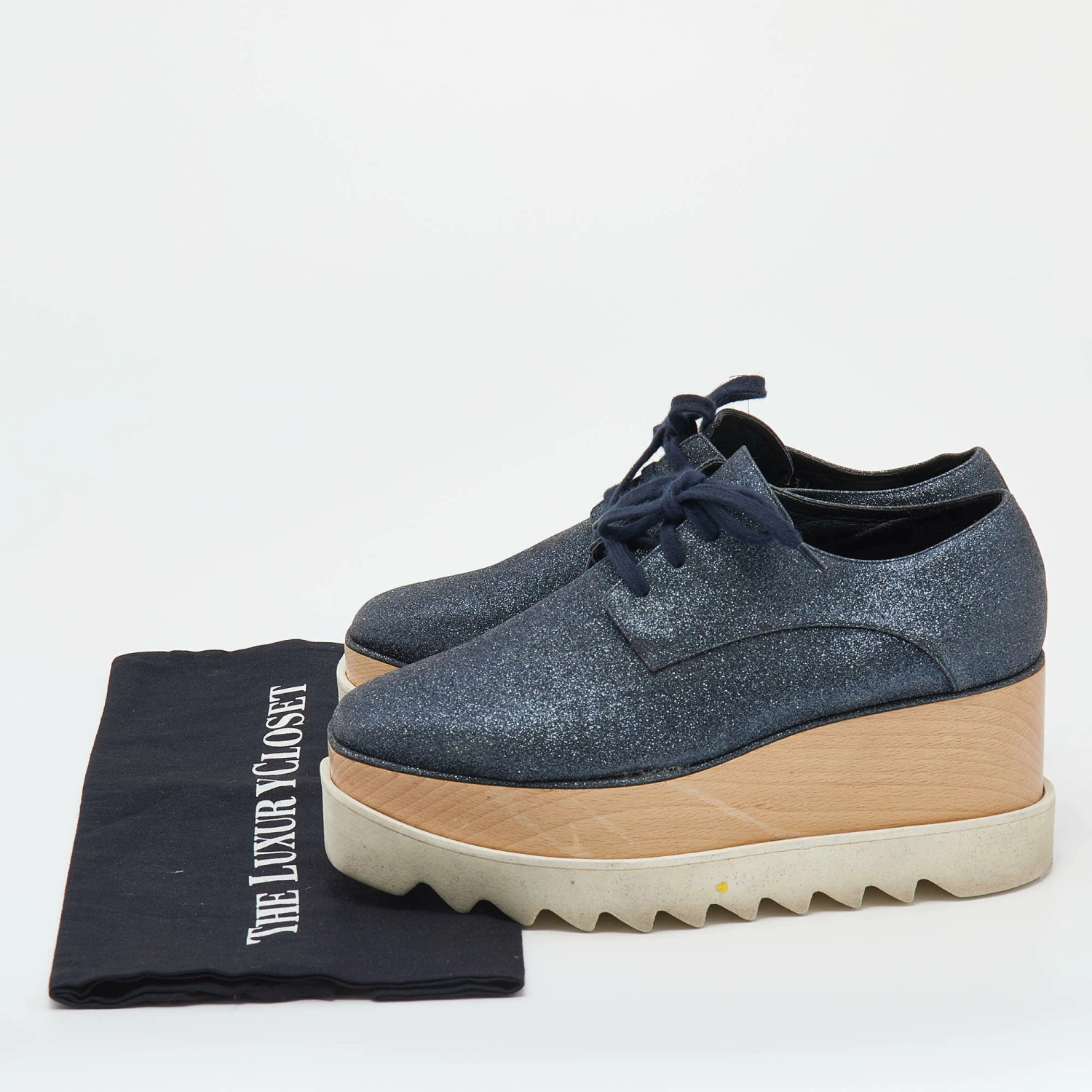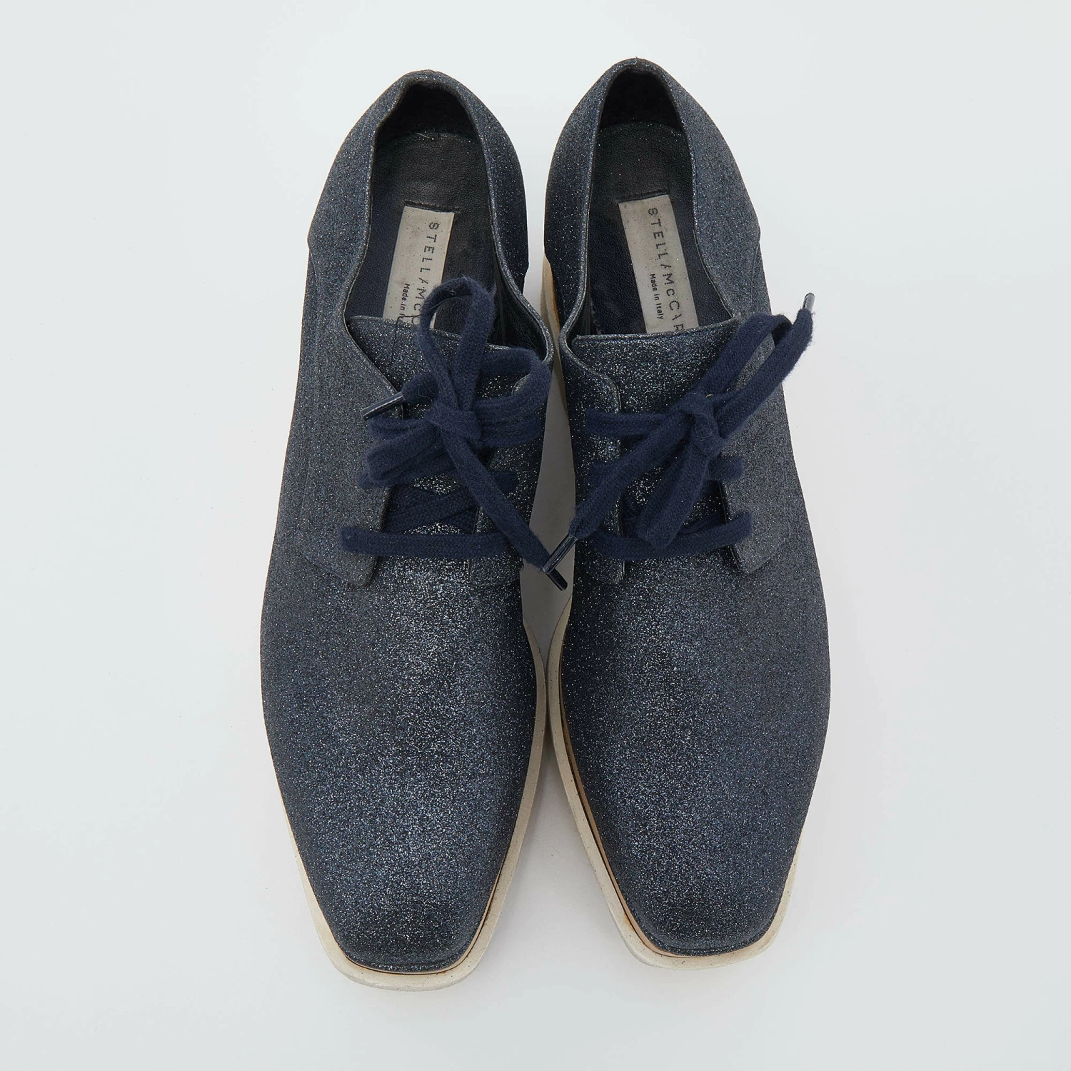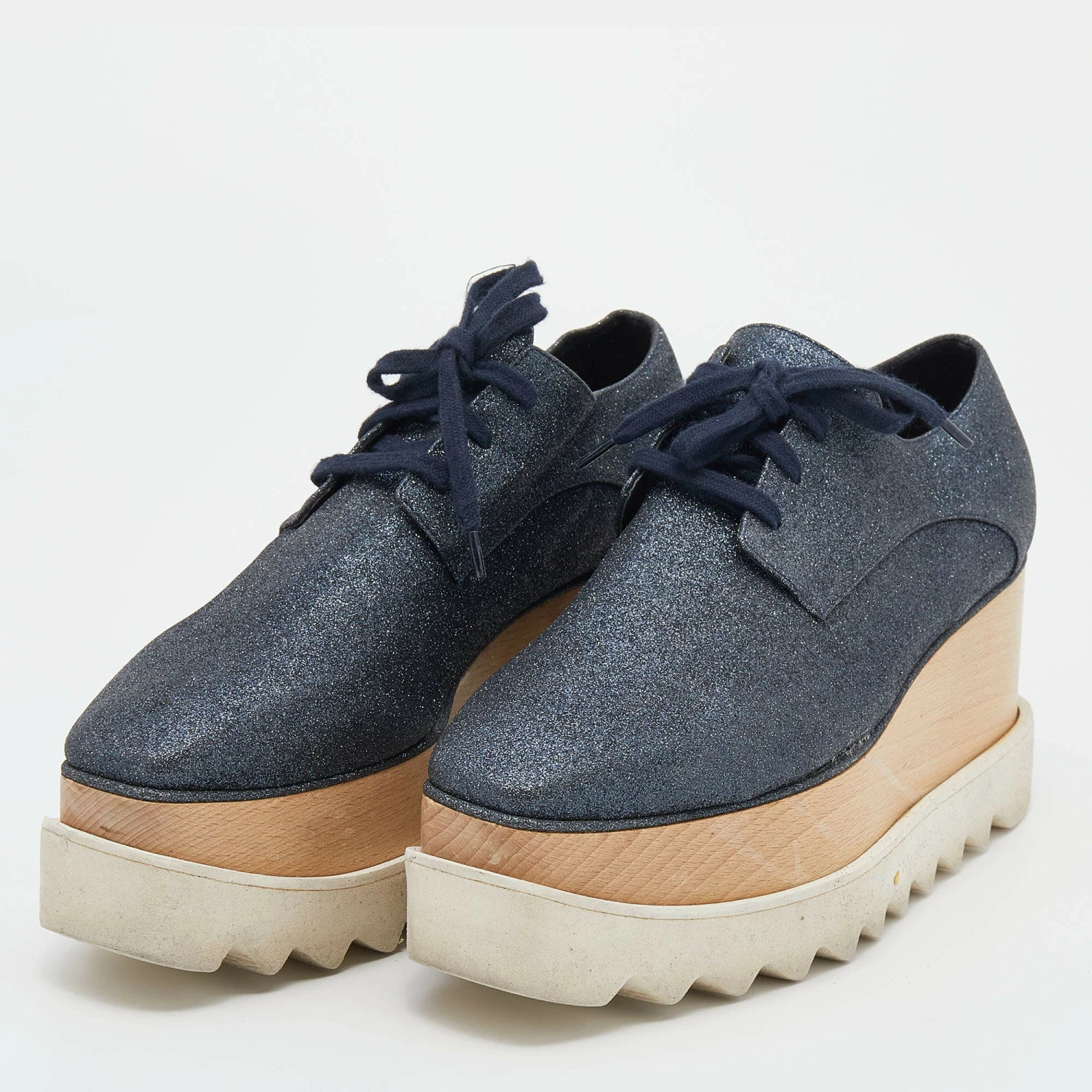 Stella McCartney exudes her high style and unique fashion taste with these Elyse shoes. They are brimming with exquisite details like the metallic glitter exterior, faux leather lining, laces, and thick platforms. Grab this pair today and let it help you express your fabulous style.