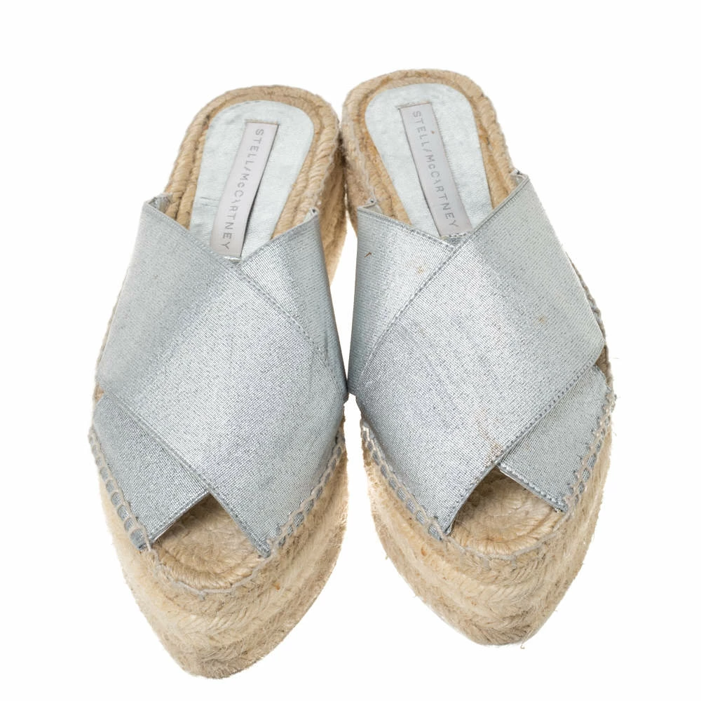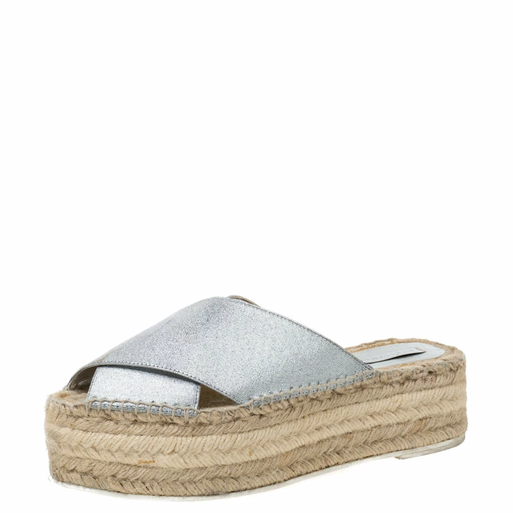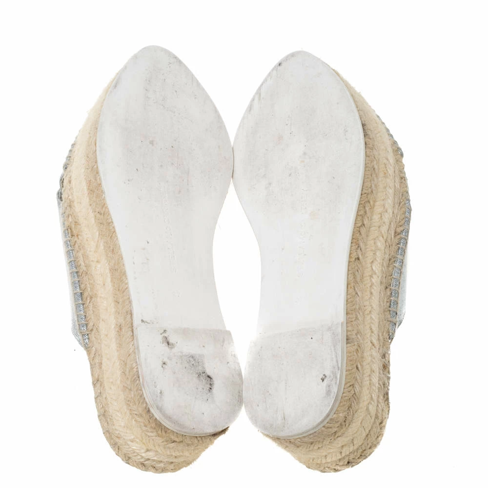 Espadrille flats never looked so stylish, thanks to these ones from Stella McCartney. The metallic flats are crafted from glitter faux leather, styled with cross straps on the vamps, endowed with comfortable insoles, and elevated on 5 cm platforms. Perfect conversation starters, we say!