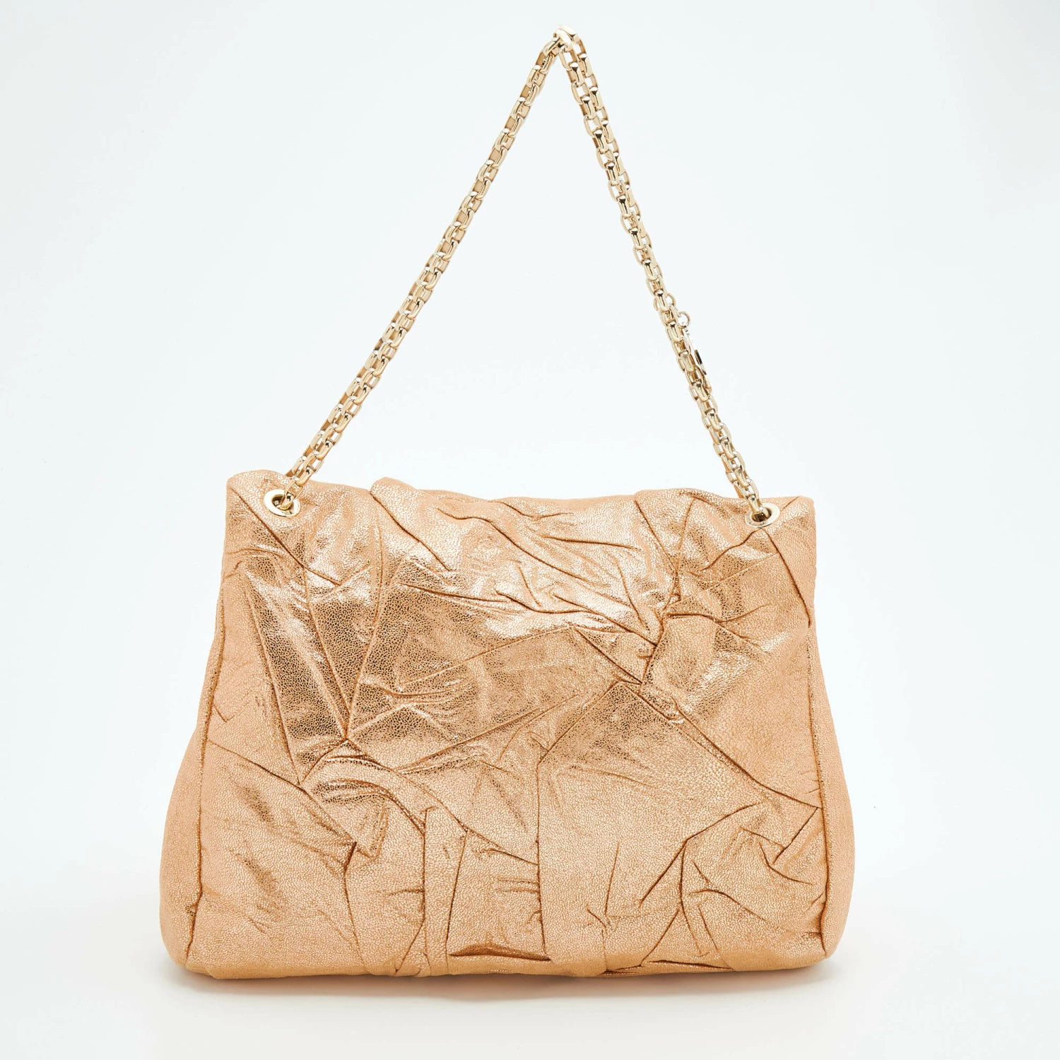This faux leather bag from Stella McCartney is built to take you through your day with ease. This well-designed piece has a flap closure, sliding shoulder chain, and a satin interior.