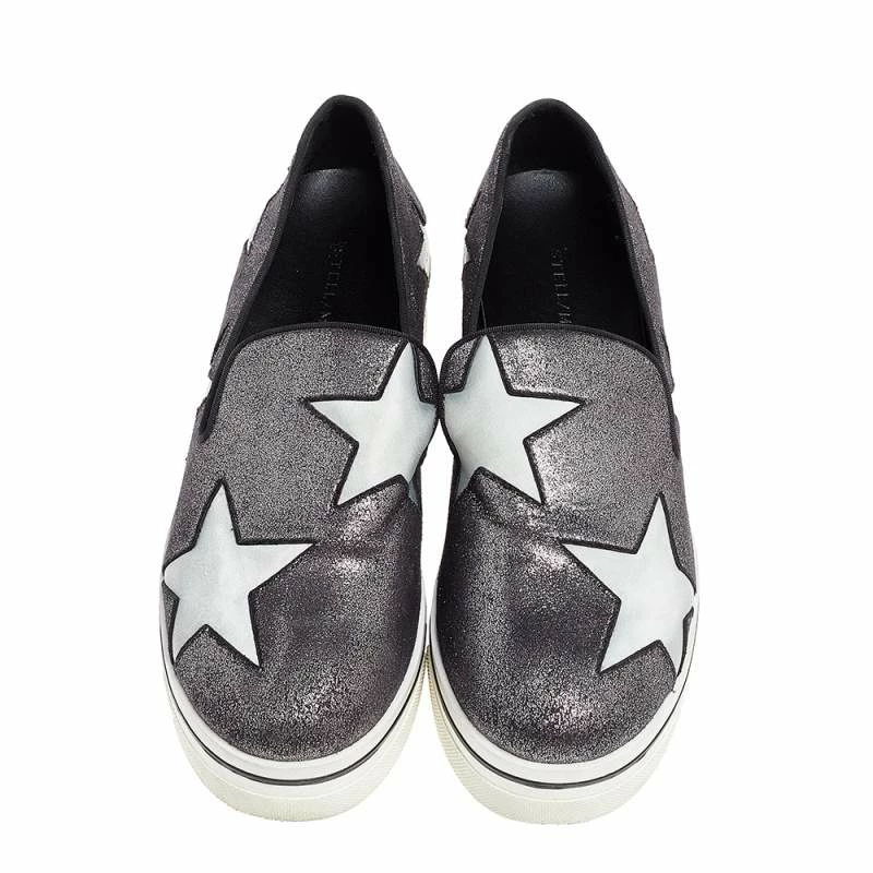 Taking inspiration from the ’90s fashion, these ‘Binx Star’ slip-on sneakers from Stella McCartney are crafted in metallic grey faux-suede with contrasting star-shaped cut-outs. Made in Italy, this low-top pair features a chunky rubber platform sole to take you to new heights.