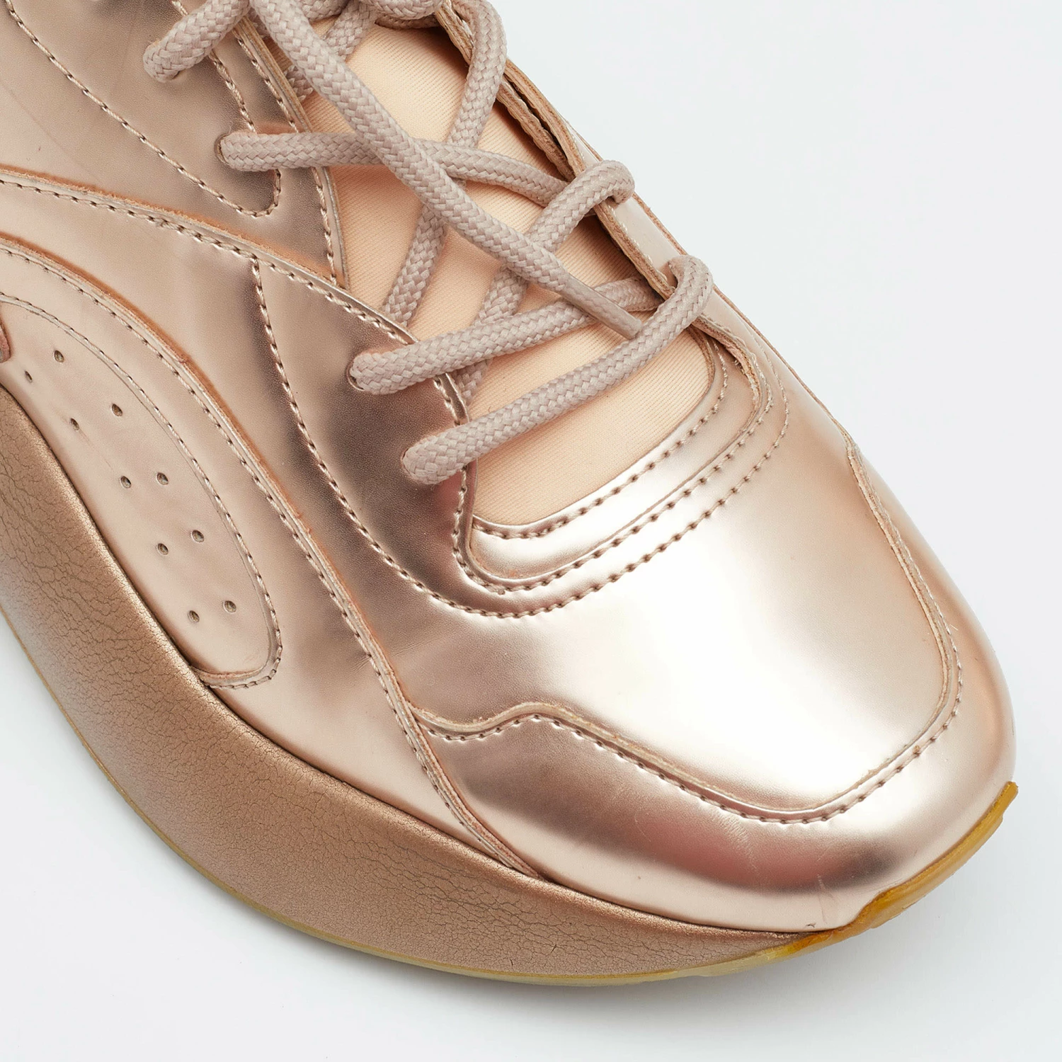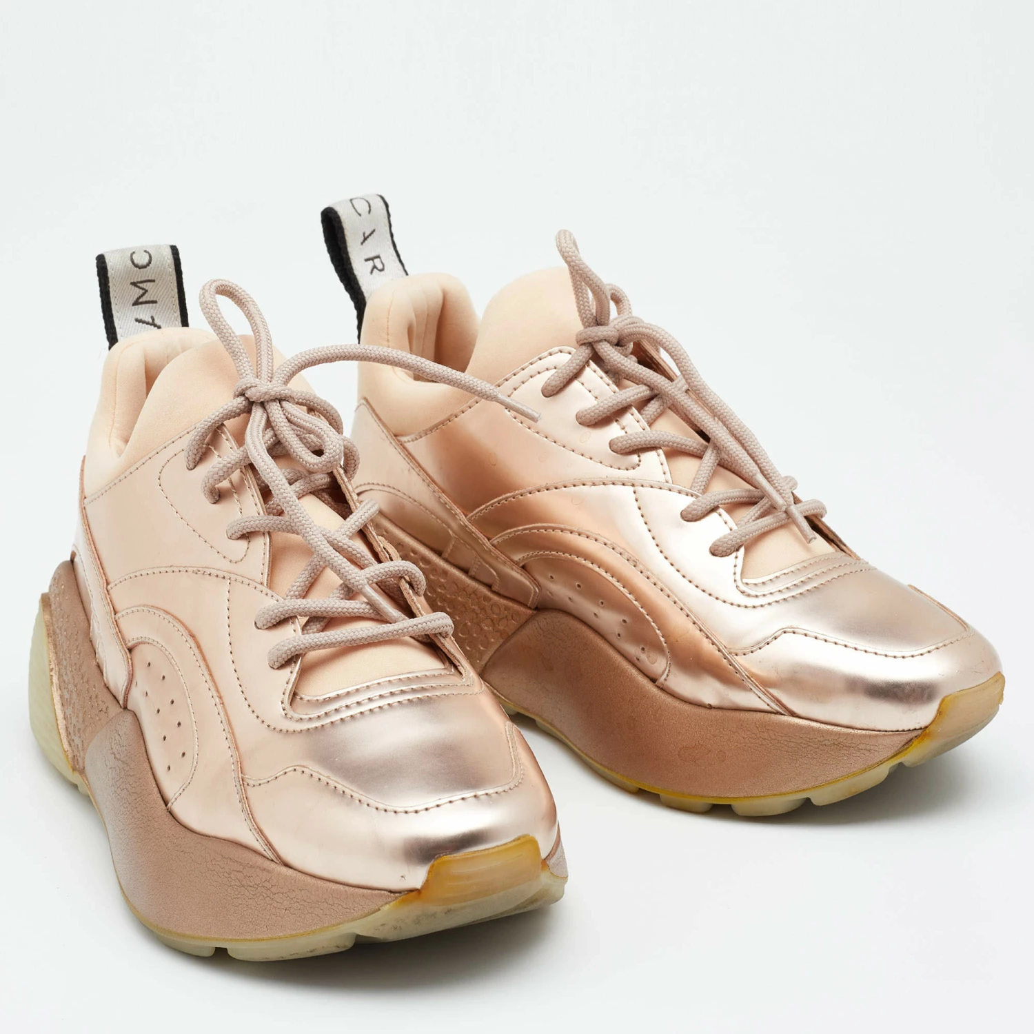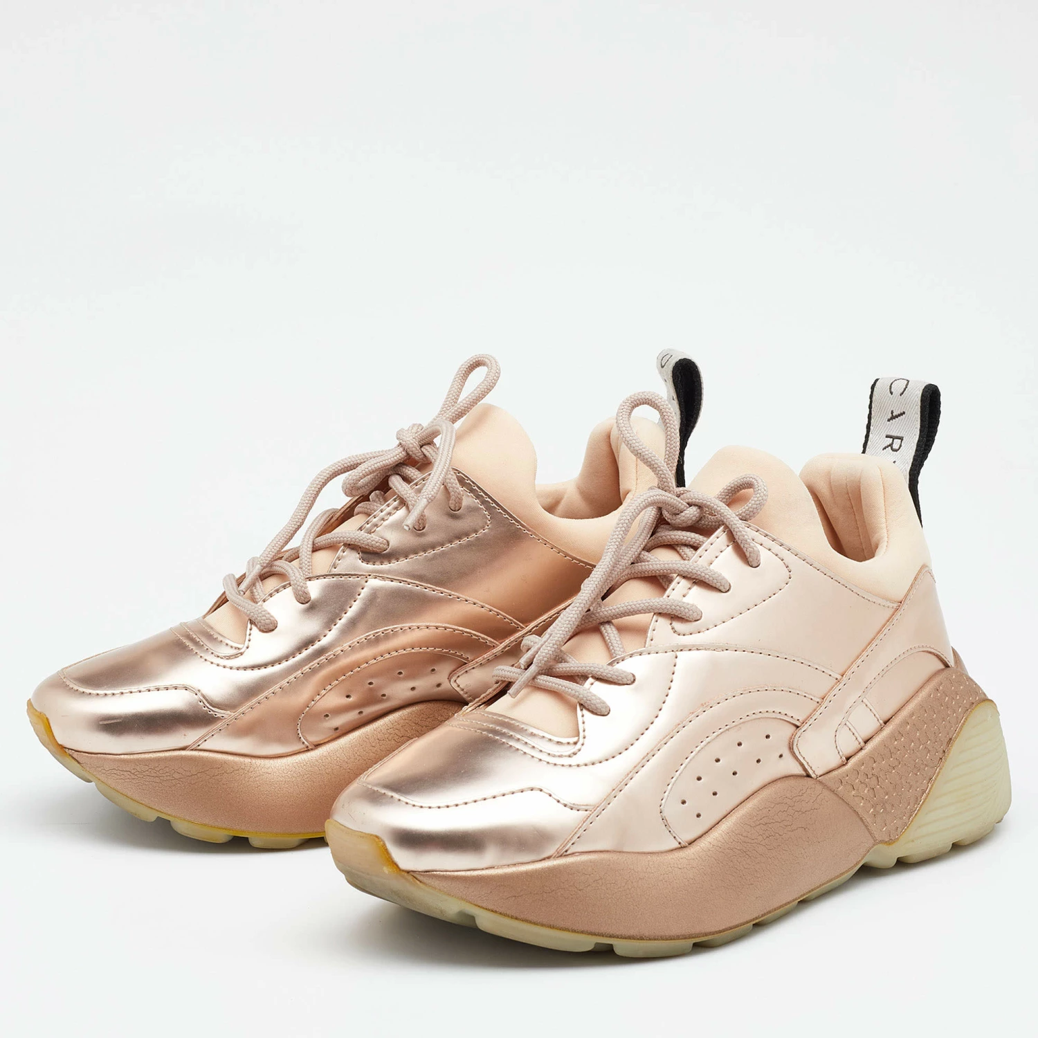Chunky sneakers have become a rage, and Stella McCartney has been acing- Diane Kruger, Rihanna, and Kendall Jenner have all donned the Eclypse pair effortlessly. This version is made from ethically sourced materials, adorned with lace-ups on the vamps. The thick sole will add a few extra inches to your height.