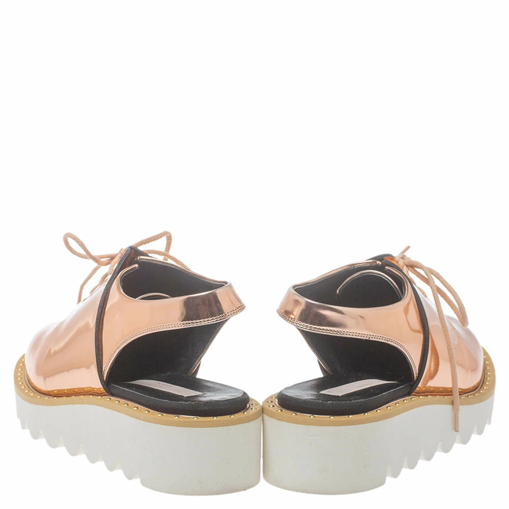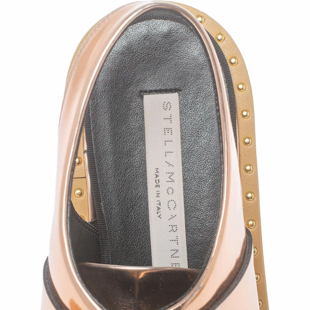 Stella McCartney never fails to amaze and charm us! These stunning mule sandals have been designed creatively and crafted from metallic rose gold patent leather. They are styled with lace-ups on the vamps and slingbacks. Equipped with comfortable leather-lined insoles, they are elevated on solid rubber platforms and will add a whole lot of style to your wardrobe.