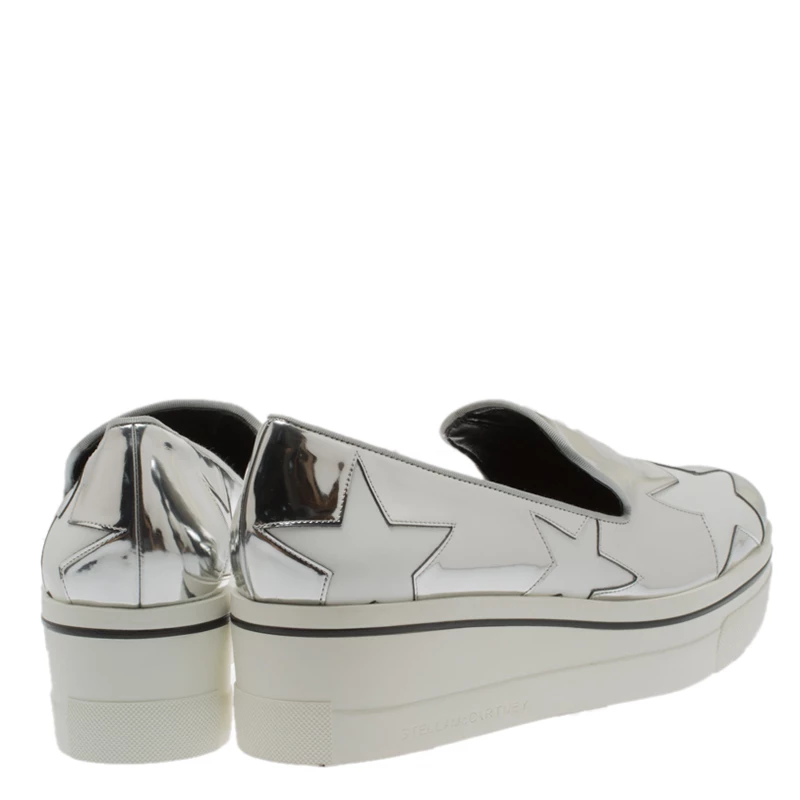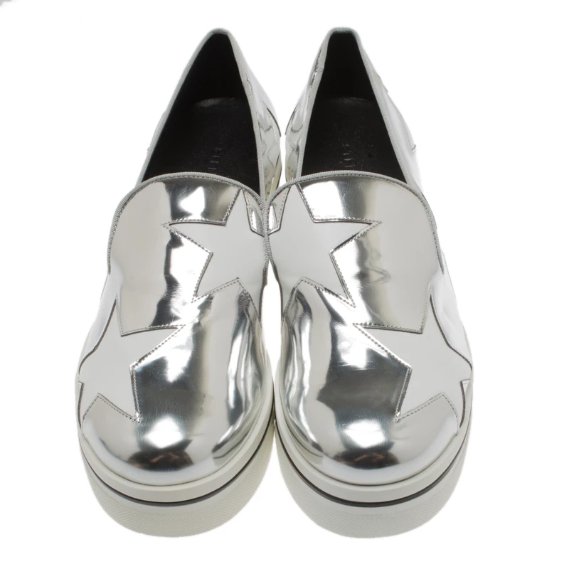 These Binx Star sneakers from Stella McCartney are effortlessly chic and stylish! The metallic silver sneakers have been crafted from faux leather and styled with round toes and star-shaped cutout details all over. They come equipped with comfortable insoles and are elevated on rubber platforms.