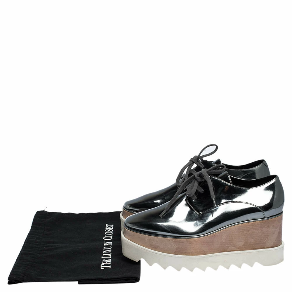 Stella McCartney proves her high style and unique fashion taste with these Elyse sneakers. They are brimming with exquisite details like the metallic silver faux leather exterior, the matching laces, and the thick serrated platforms. Grab this pair today and let it help you express your fabulous style.