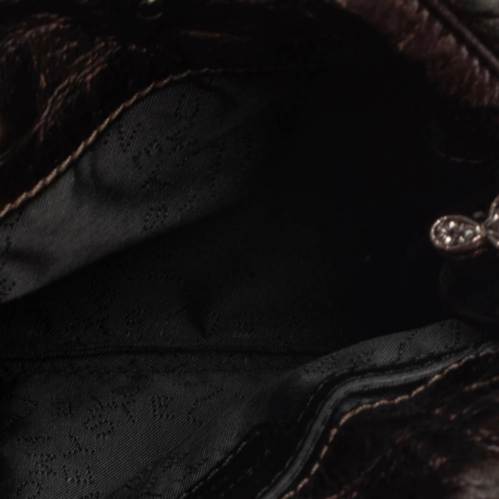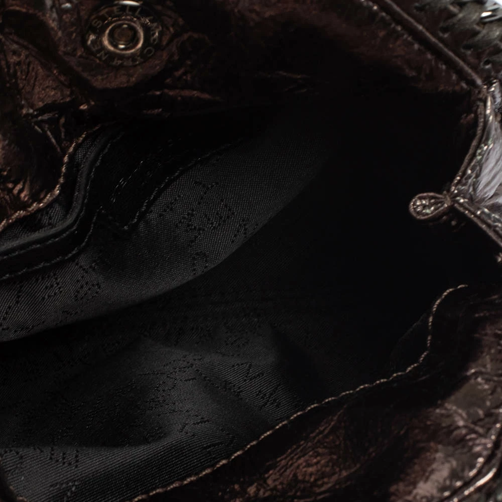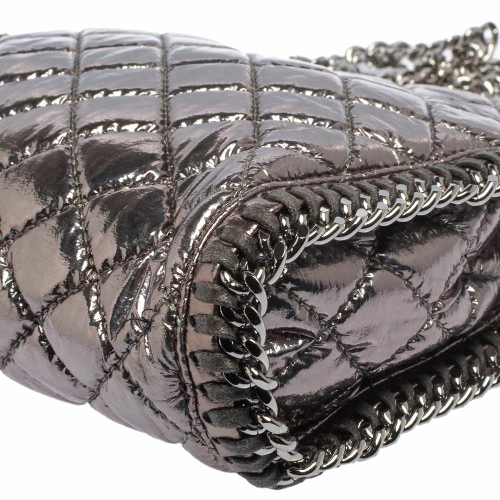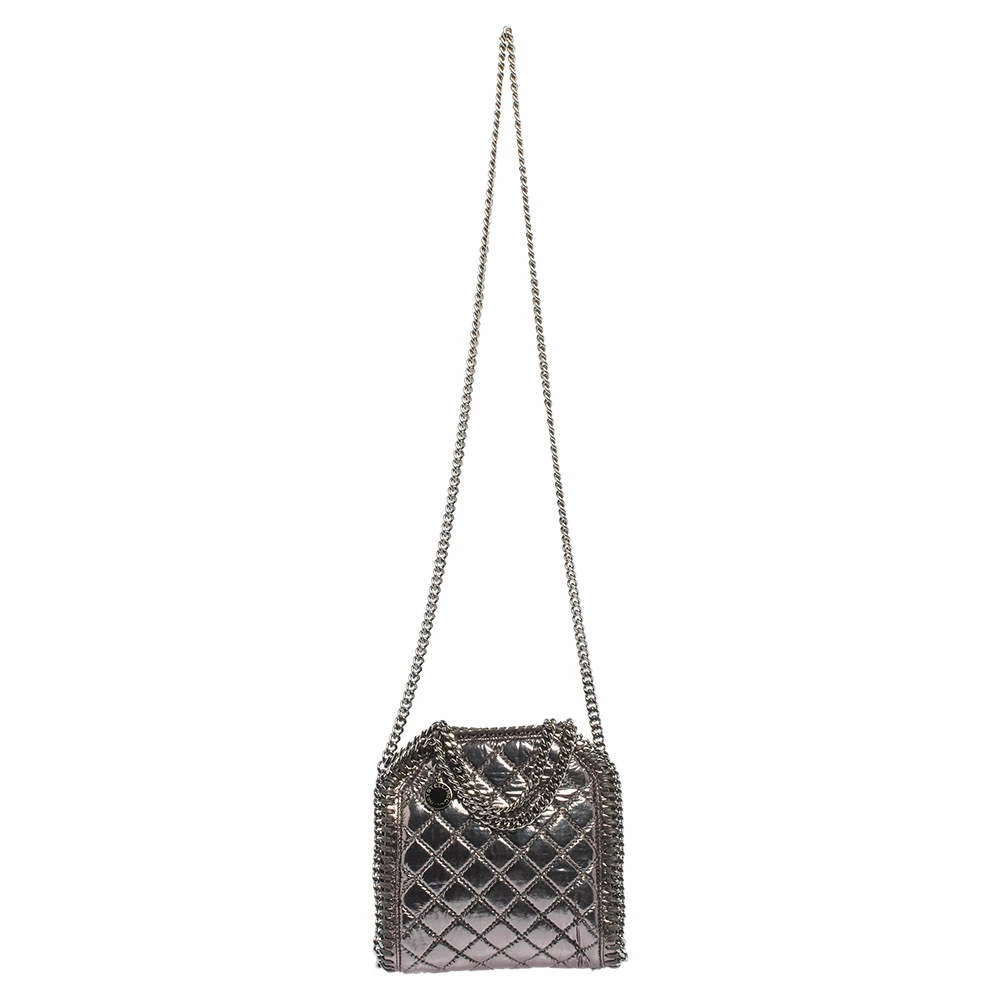 This Falabella bag from Stella McCartney will make the dream of countless women come true. Crafted from faux patent leather, it is durable and stylish. While the chain detailing elevate its beauty, the fabric-lined interior will dutifully hold all your daily essentials. You are sure to make hearts skip when you swing this metallic silver bag using the chain handles.