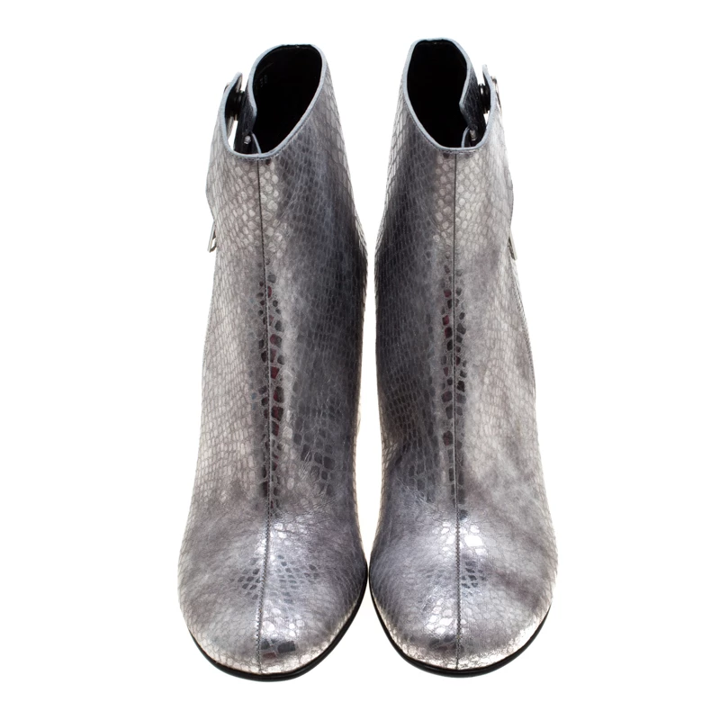 This impressive pair of boots have been neatly crafted out of supreme quality python embossed faux leather. The smartness of these faux leather sole boots lies in comfortable block heels and round toes.