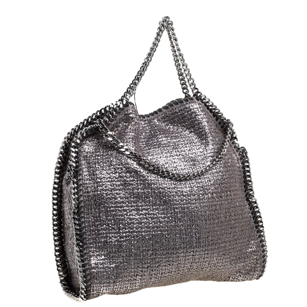 Stella McCartney’s Falabella bag first appeared in the label’s Fall ’10 collection and has since proven itself a cult favorite. The chunky chain straps and whipstitched edges make the bag instantly recognizable. This version has been crafted in Italy from tweed in a metallic silver hue. Get this tote and flaunt your fashion-forward choices.