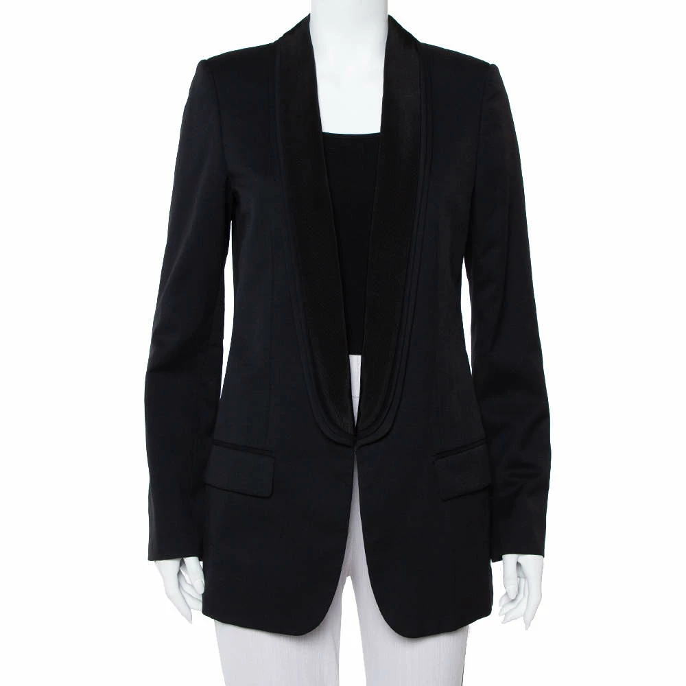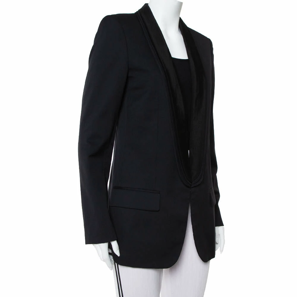 This blazer from Stella McCartney is one item your closet will love. Made from wool, it carries a midnight blue hue, contrasting trim detailed lapels, a hook closure, and long sleeves. Cut into a silhouette that is extremely stylish, this classic number is a must-buy.