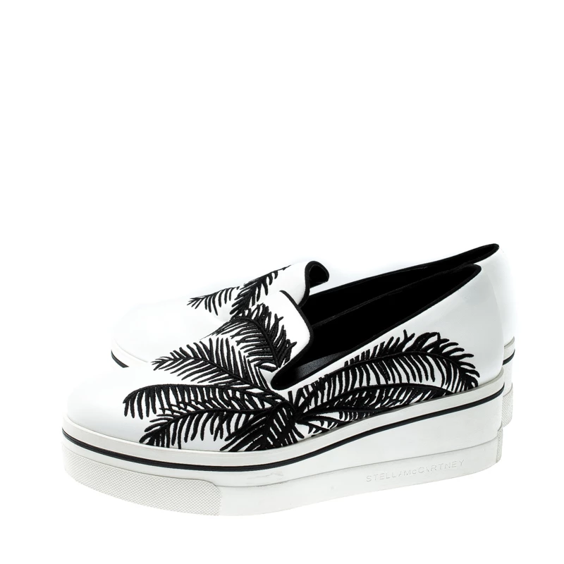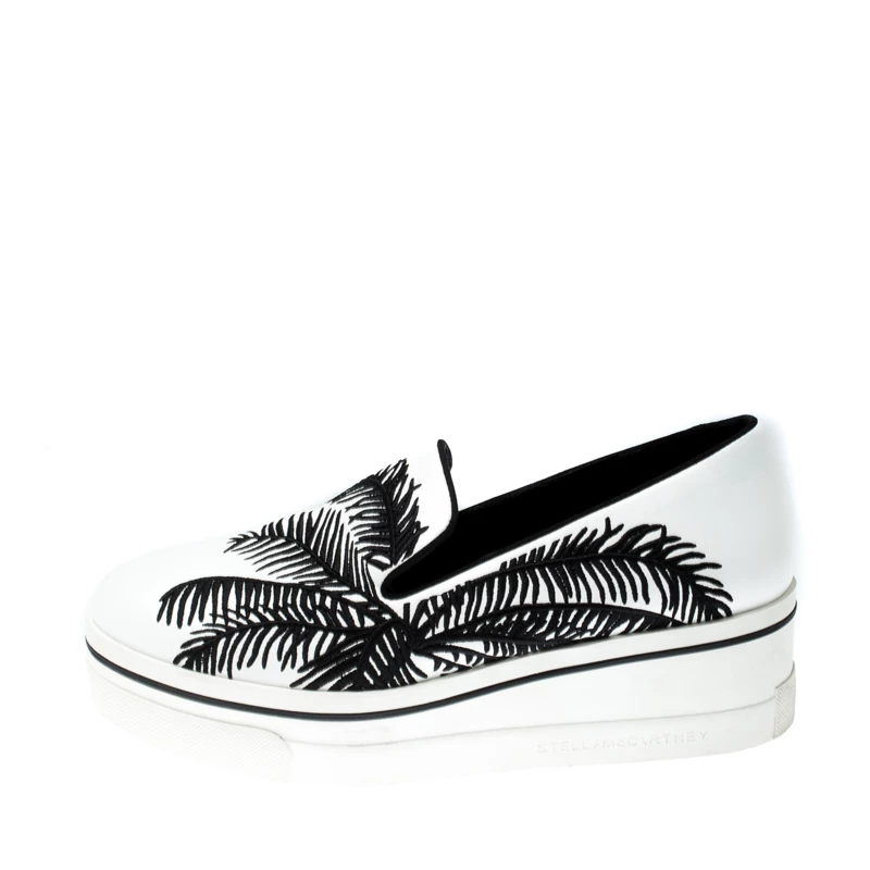To accompany your attires with ease, Stella McCartney brings you this pair of sneakers that speak nothing but high style. They’ve been crafted from faux leather and designed with embroidery of palm trees. The comfortable sneakers are easy to slip on and they are elevated on platforms.