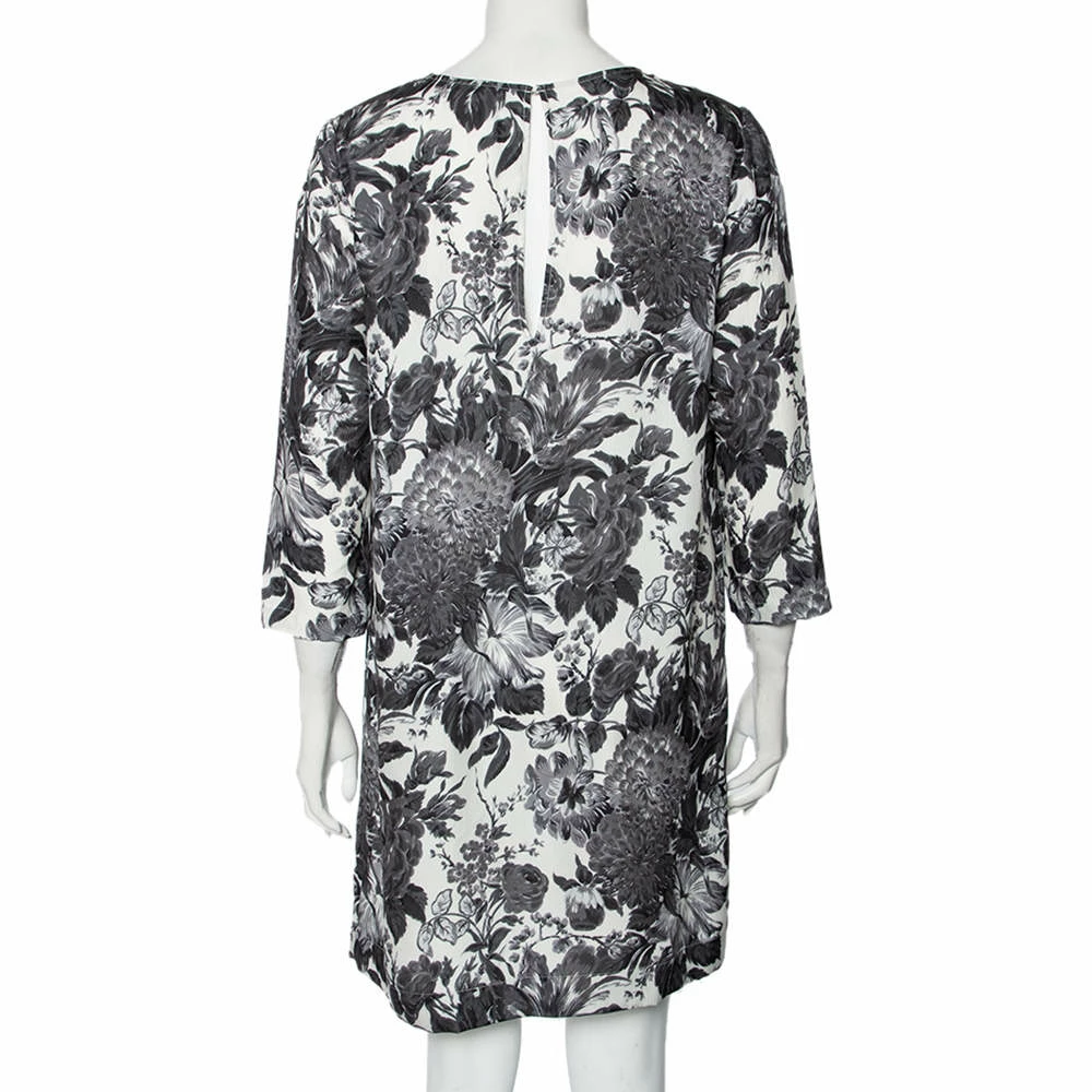 This Stella McCartney dress is every bit stylish and in trend. Look marvelous in this posh grey outfit as you go out and about town. This floral printed silk ensemble features a short length, a monochromatic palette and a simple neckline.
