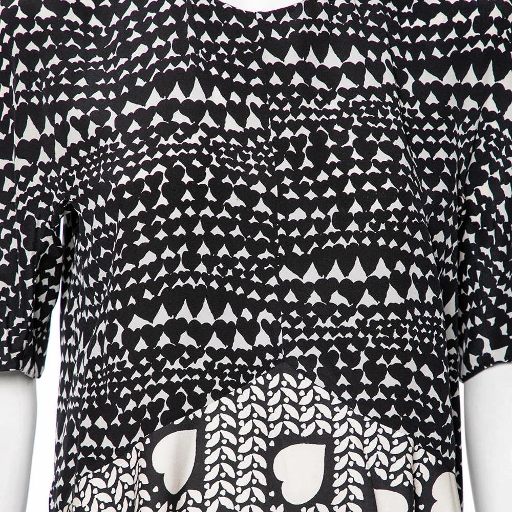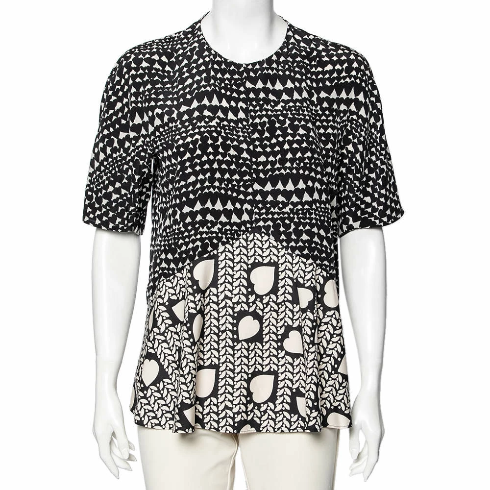 Make an elegant and chic style statement wearing this flounce top from Stella McCartney. The monochrome piece looks utterly fashionable with its unique heart print. Pair the silk top with trousers and flats for that effortless appeal.